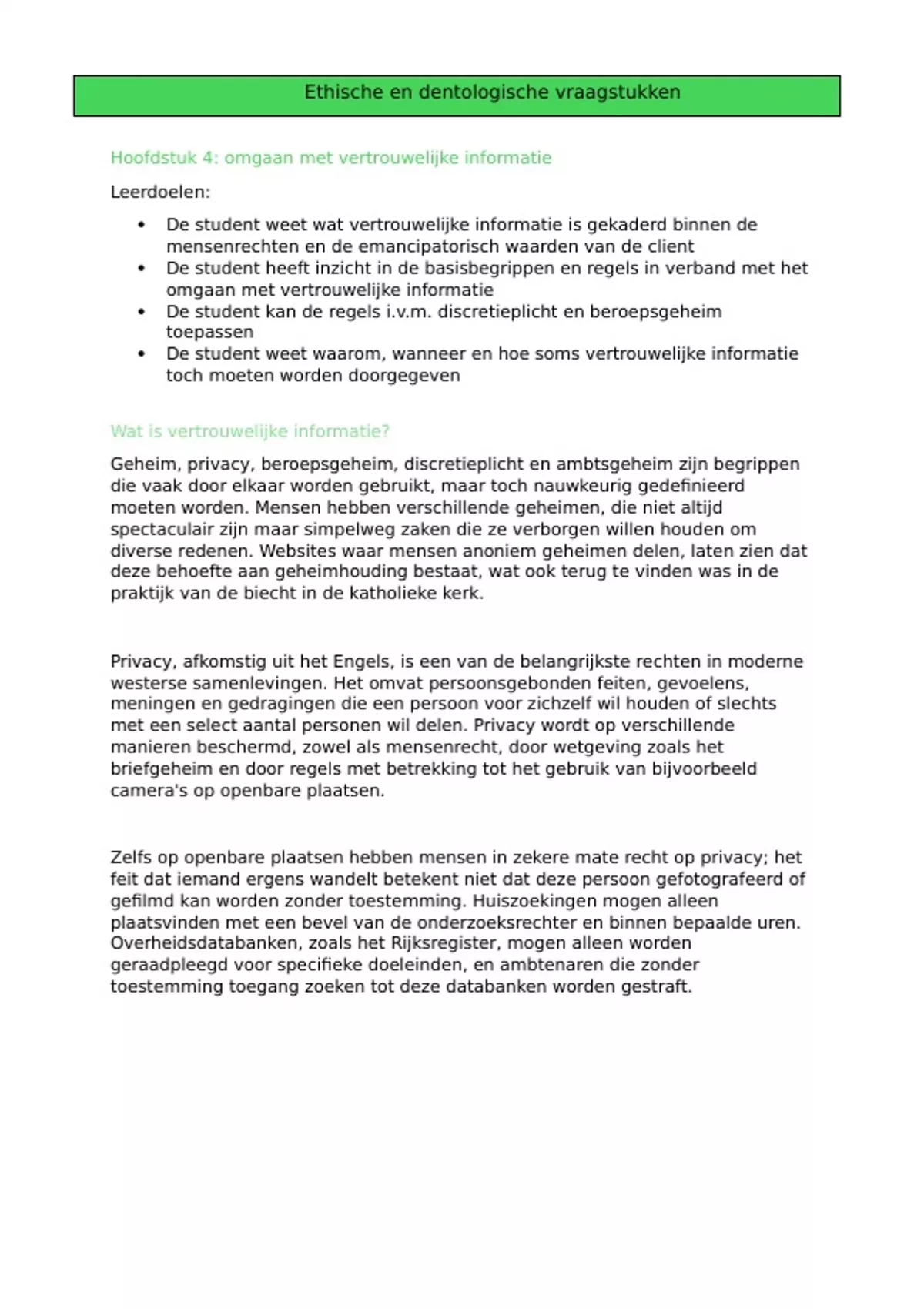 Hoofdstuk 4: omgaan met vertrouwelijke informatie