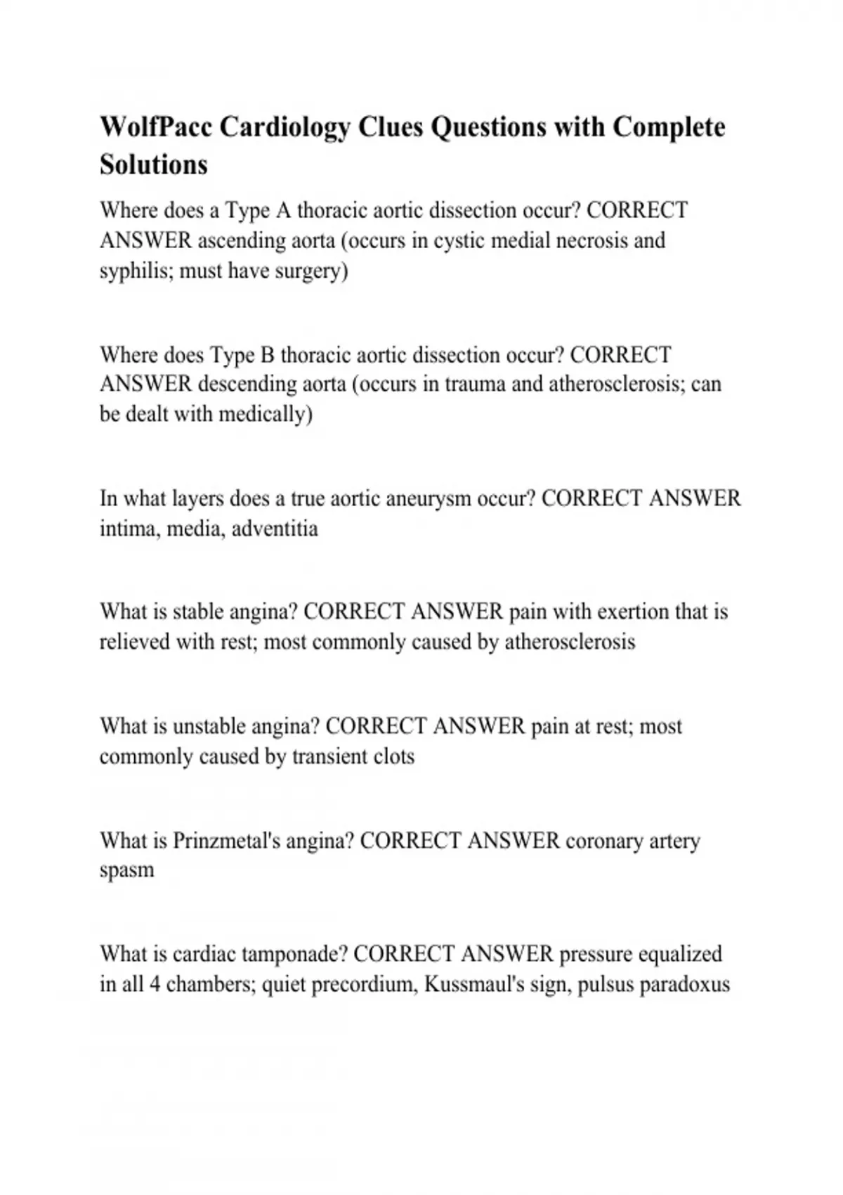WolfPacc Cardiology Clues Questions with Complete Solutions.