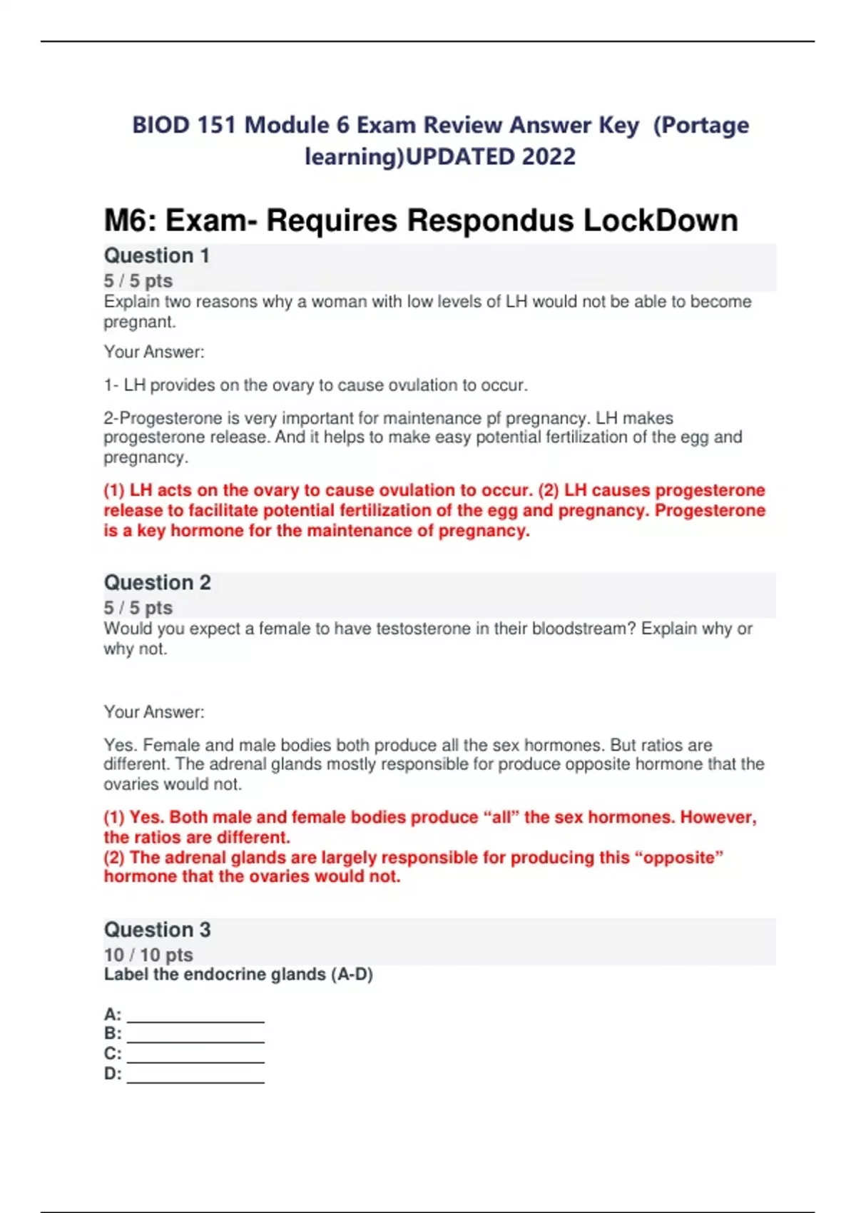 BIOD 151 Module 6 Exam Review Answer Key (Portage learning)UPDATED 2022