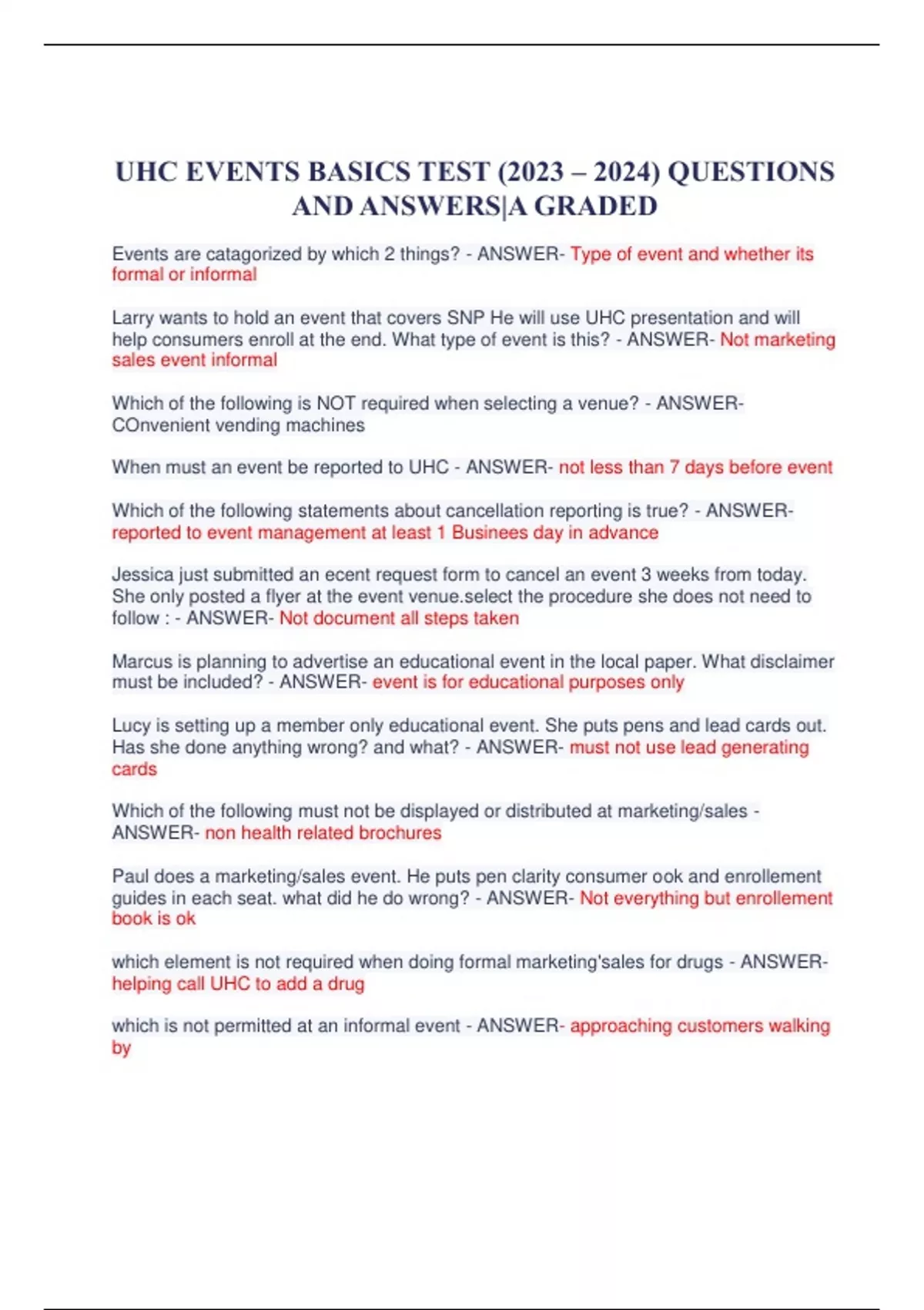 UHC EVENTS BASICS TEST (2023 – 2024) QUESTIONS AND ANSWERS|A GRADED