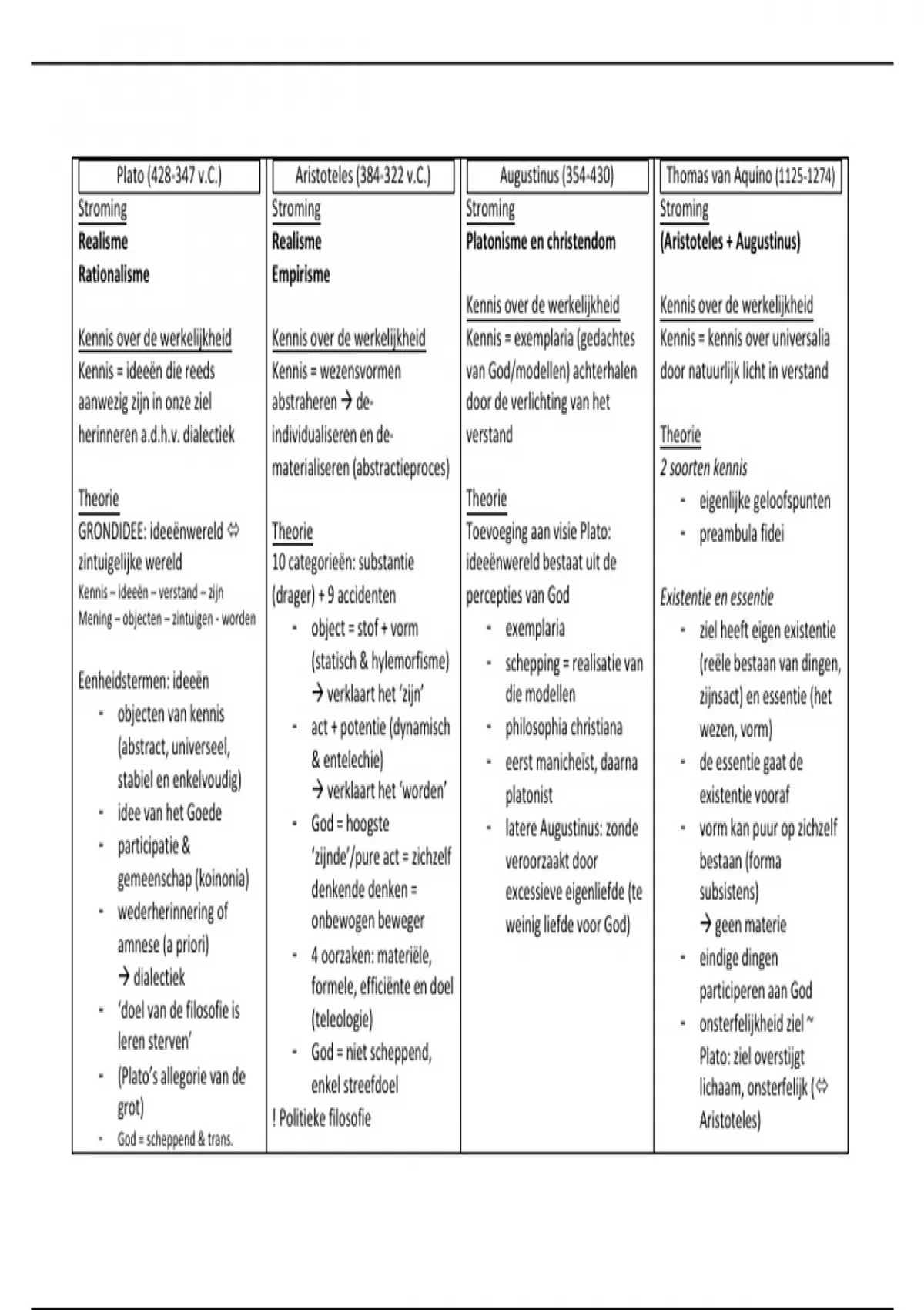 Plato (428-347 v.C.) Aristoteles (384-322 v.C.) Augustinus (354-430) Thomas van Aquino (1125-1274)