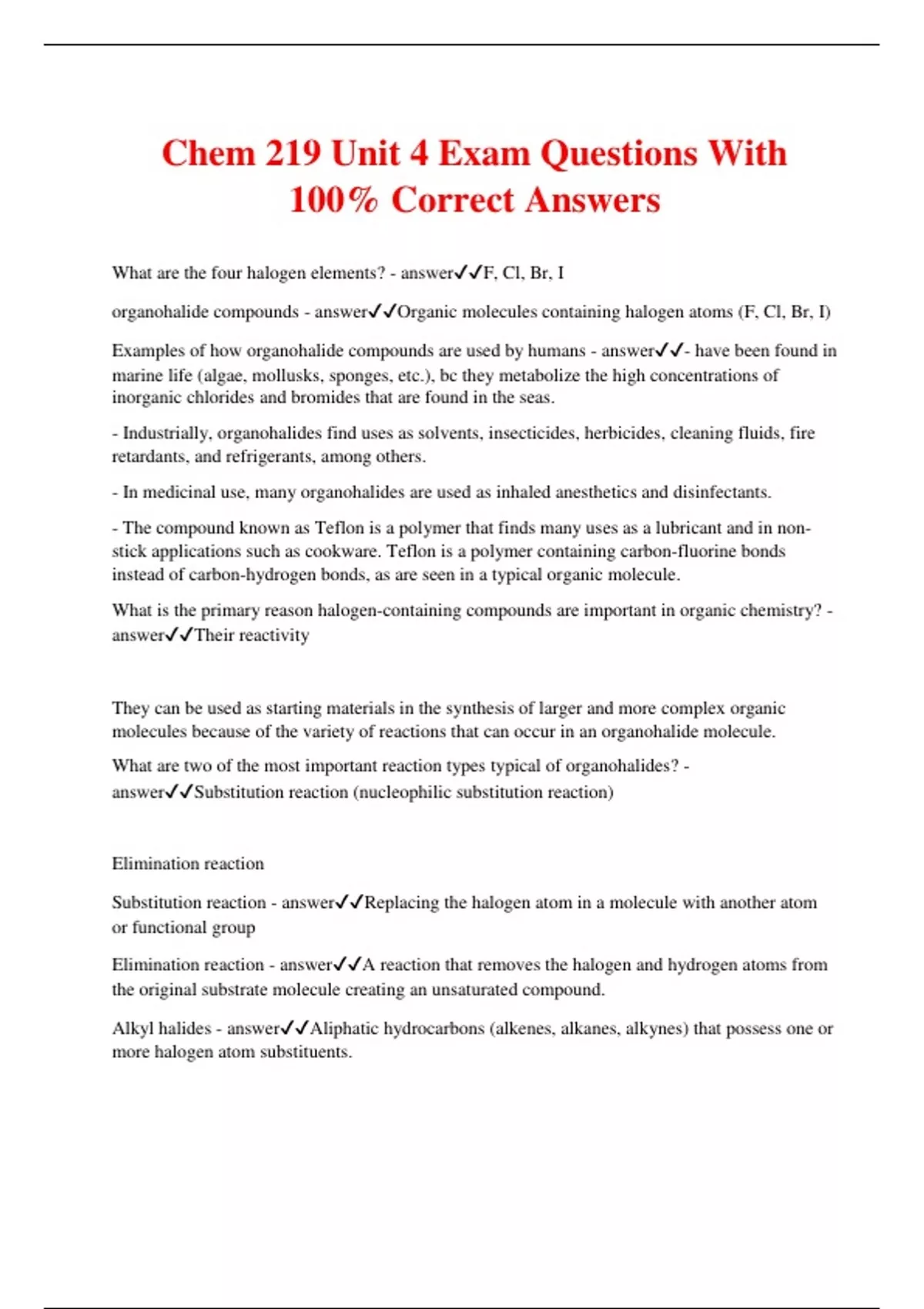 Chem 219 Unit 4 Exam Questions With 100% Correct Answers