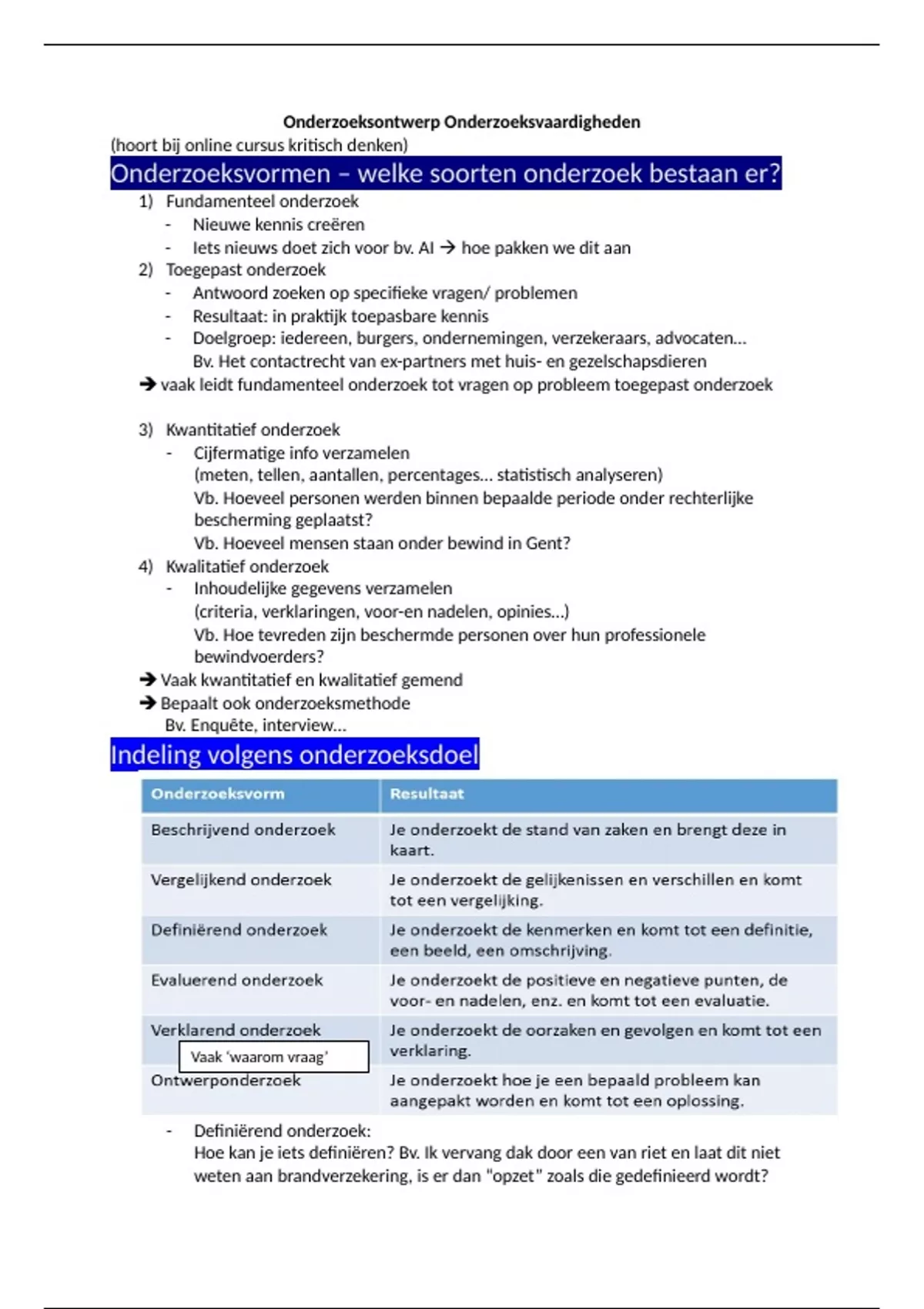 Goede samenvatting over het deeltje over onderzoeksontwerp in de cursus Onderzoeksvaardigheden op HoGent in het jaar 23-24. In eerste zit 16/20 gehaald met deze samenvatting. Volledige opsomming van de onderzoeksvormen, onderzoeksdoelen, onderzoeksmethoden, onderzoeksfasen en de voorwaarden voor kwaliteitsvol onderzoek