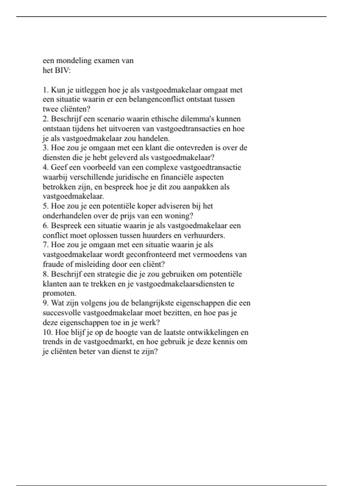 Samenvatting De 48 vragen voor een geslaagde examen bij de BIV! O