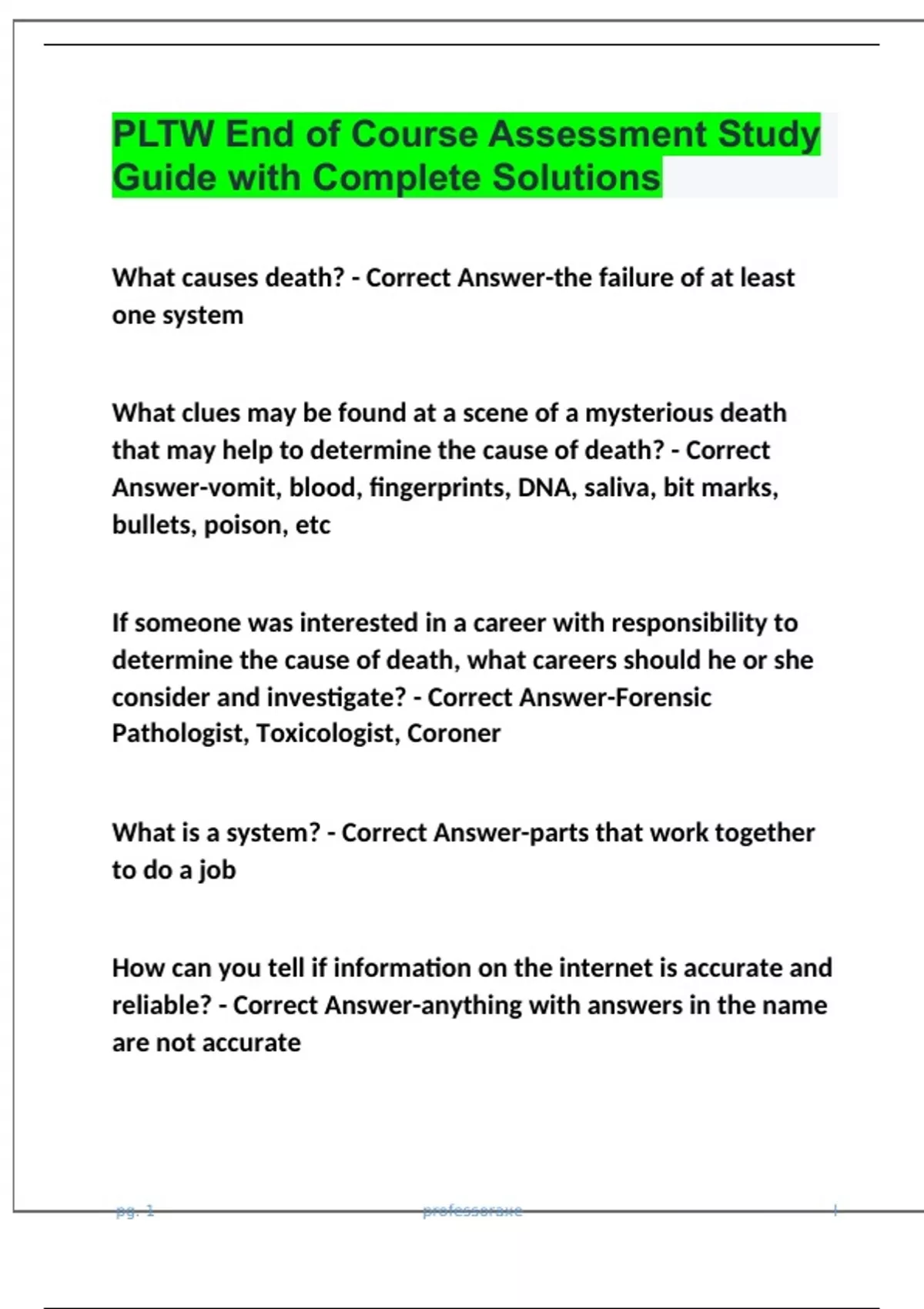 PLTW End of Course Assessment Study Guide with Complete Solutions