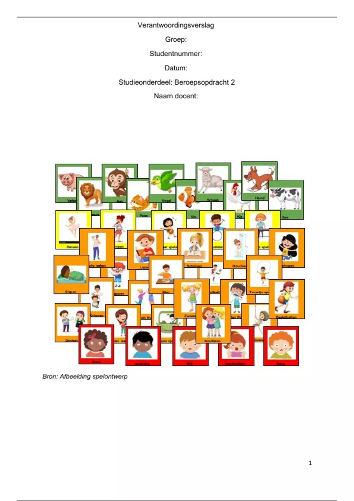 kleur bevat. De kaarten met dieren zijn groen van kleur, de kaarten met activiteiten zijn