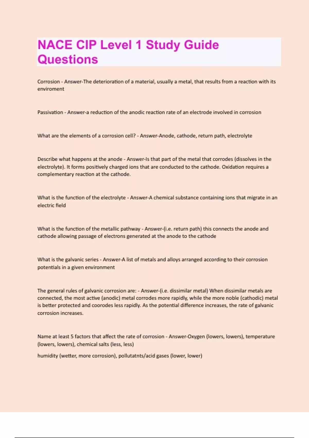 NACE CIP Level 1 Study Guide Questions and Answers 100% Solved correctly