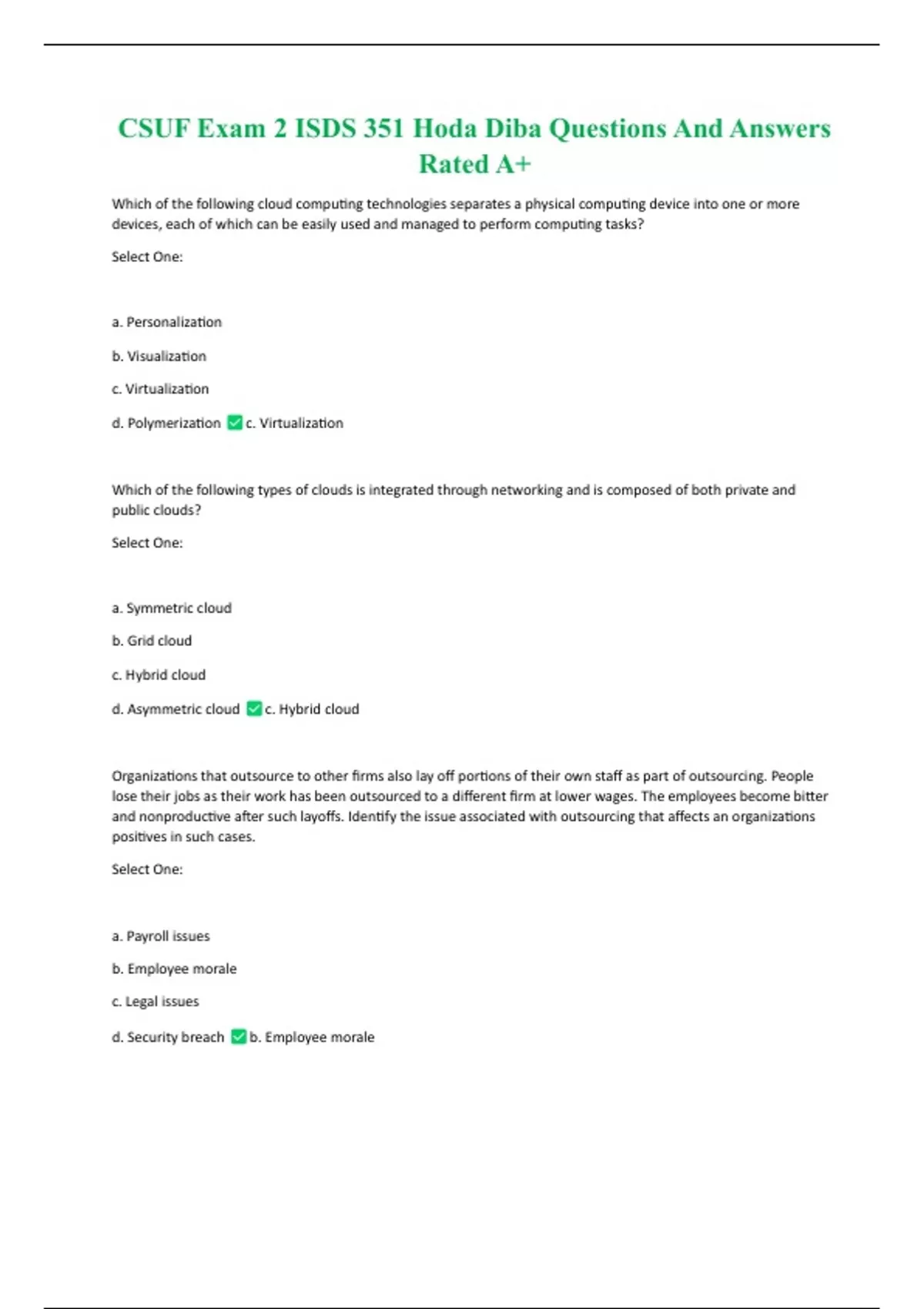 CSUF Exam 2 ISDS 351 Hoda Diba Questions And Answers Rated A CSUF Exam 2 ISDS 351 Hoda Diba Questions And Answers Rated A