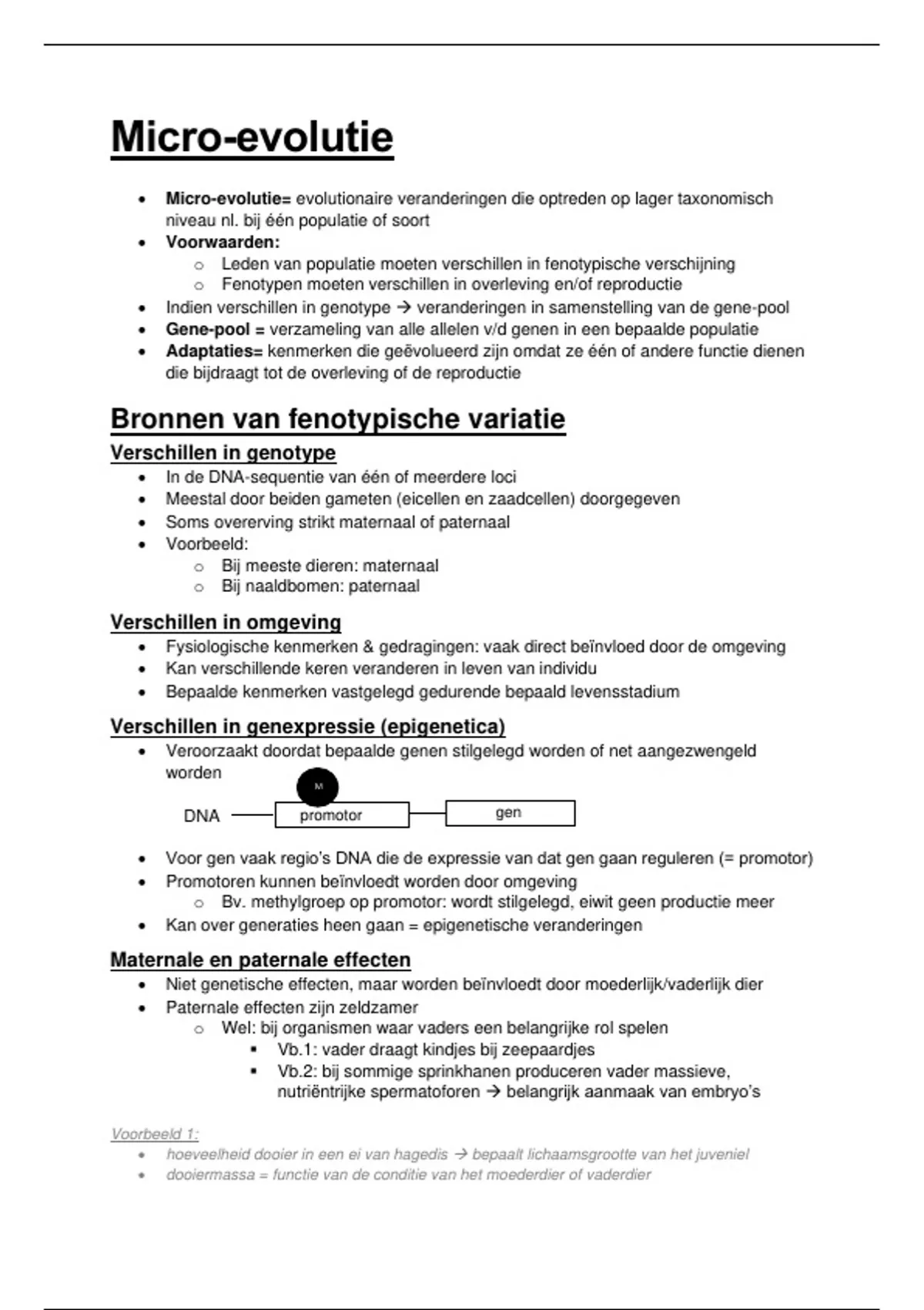 • Micro-evolutie= evolutionaire veranderingen die optreden op lager taxonomisch