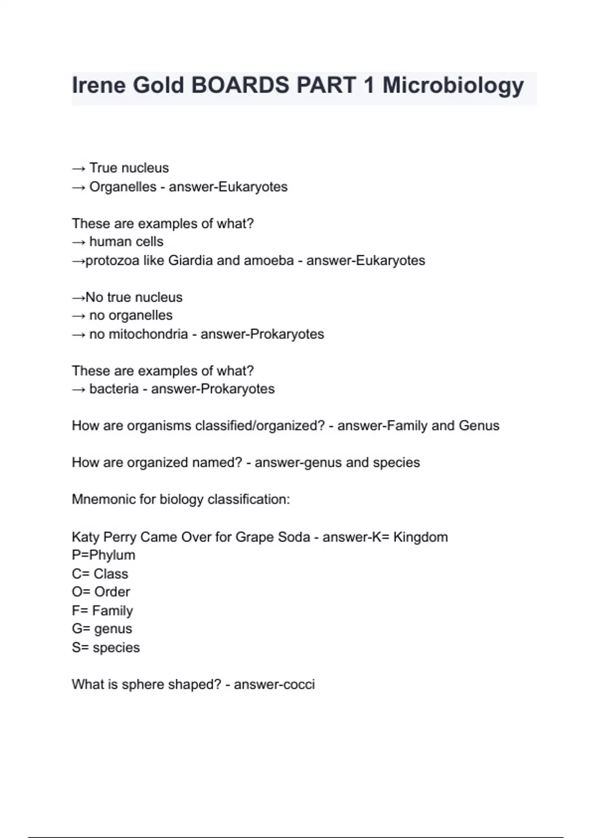 Irene Gold BOARDS PART 1 Microbiology with complete solution