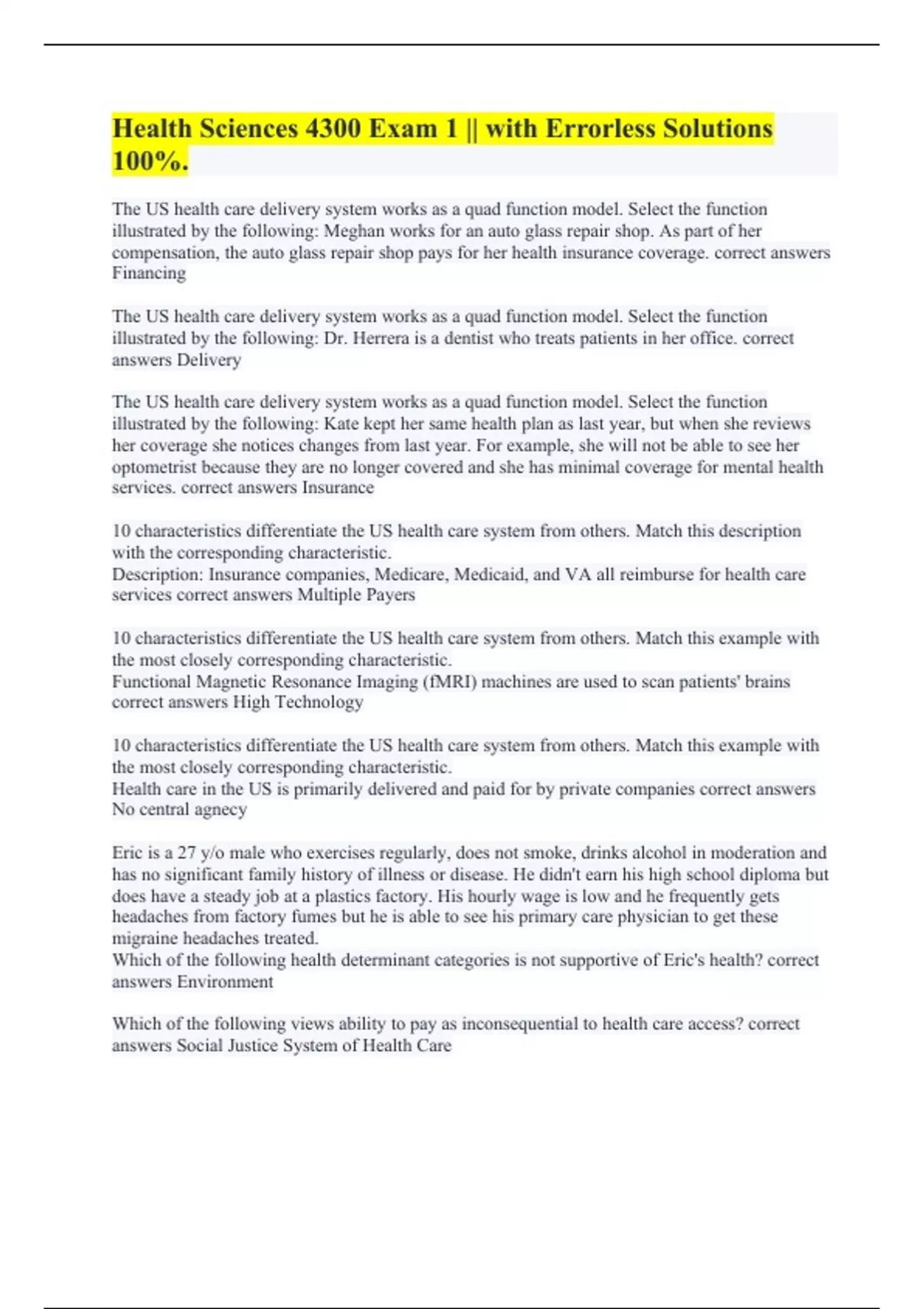 Health Sciences 4300 Exam 1 || with Errorless Solutions 100%.