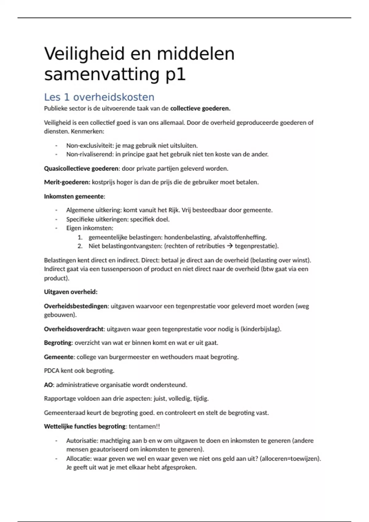 Les 1 overheidskosten