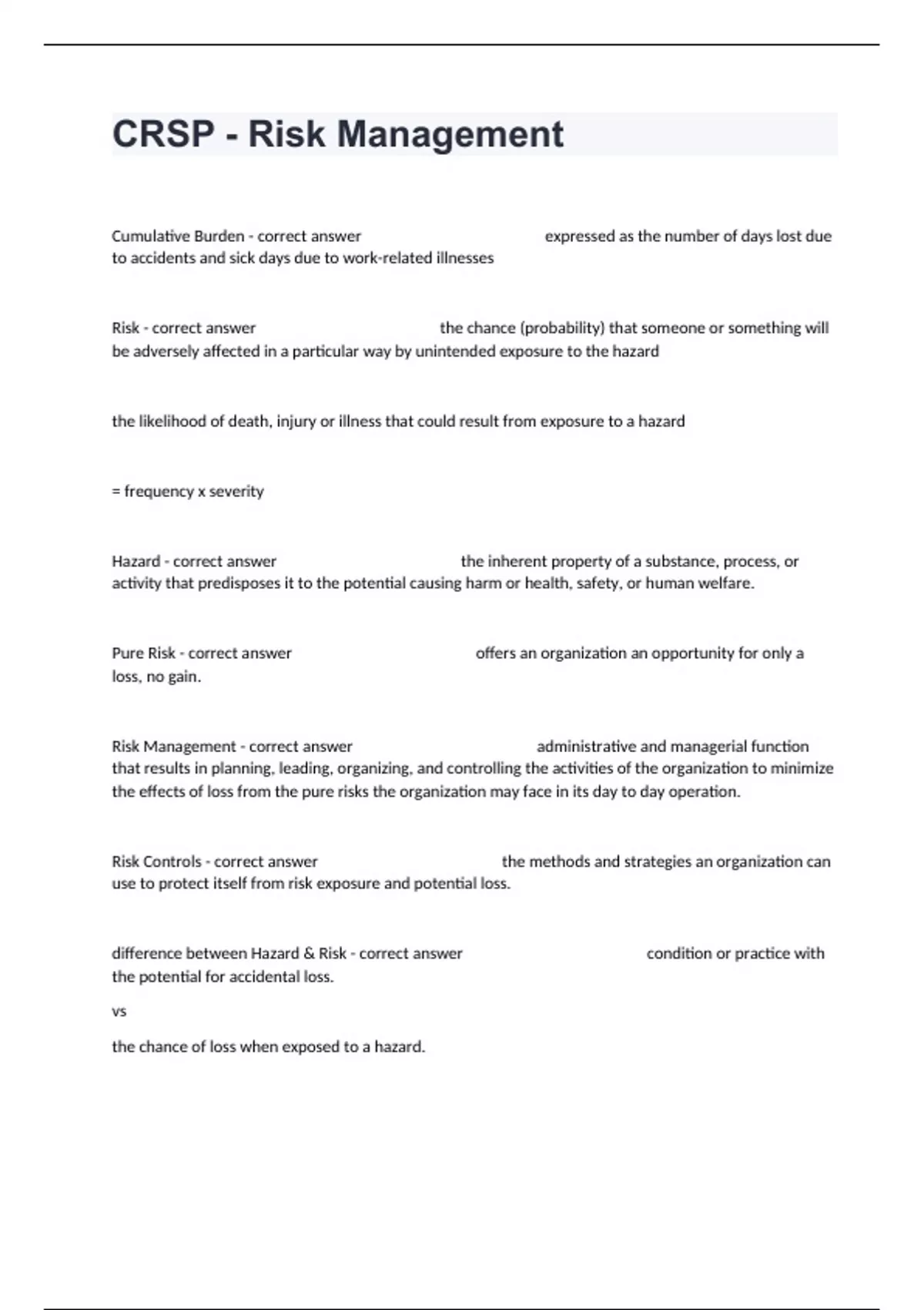 CRSP - Risk Management Latest Study Guide Exam Questions And Answers.