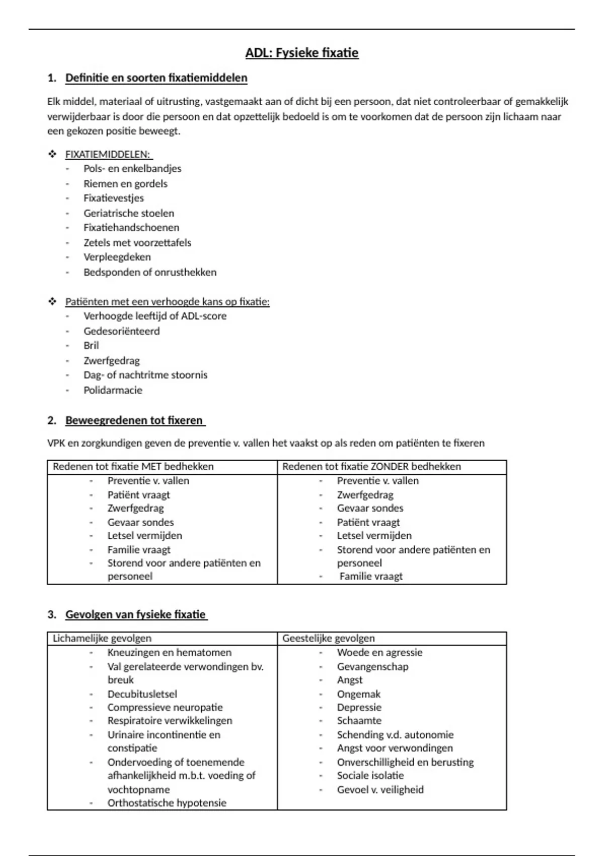 VPK en zorgkundigen geven de preventie v. vallen het vaakst op als reden om patiënten te fixeren
