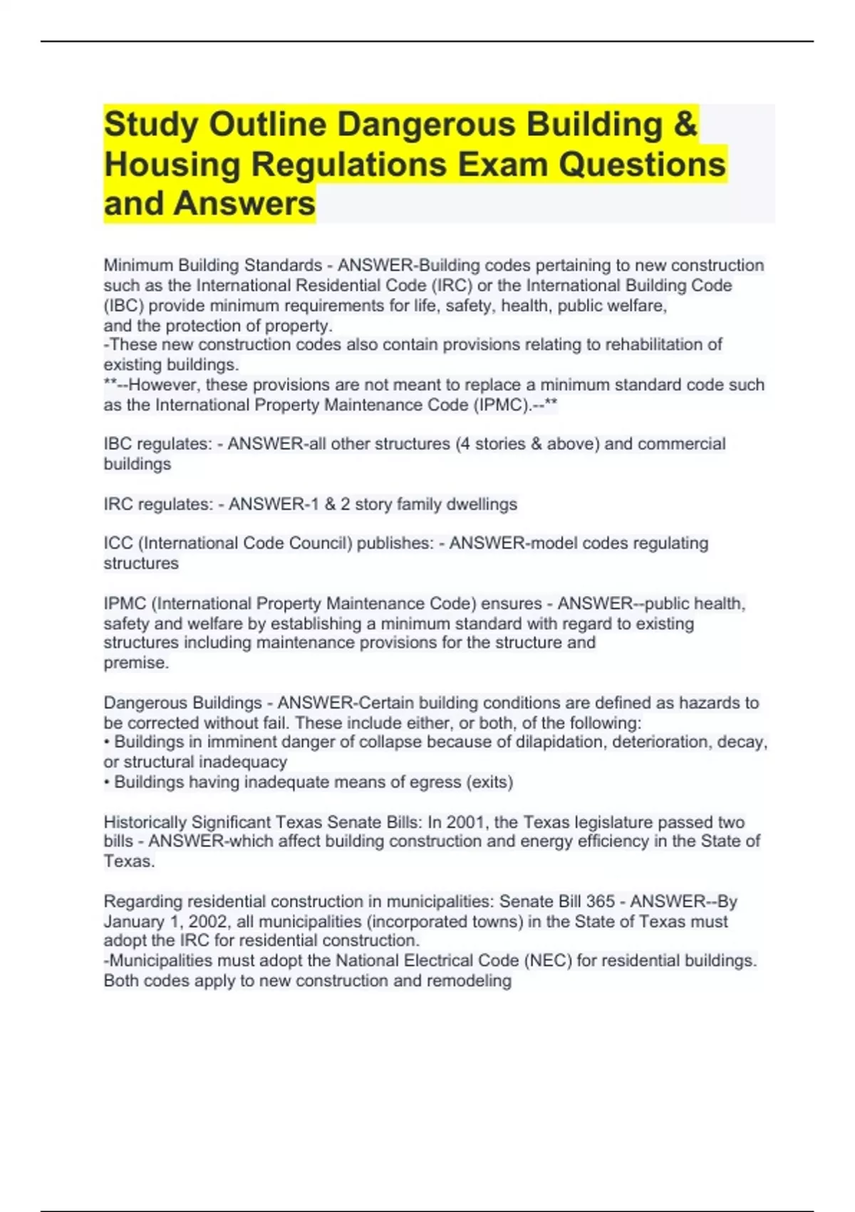 Dangerous Buildings - ANSWER-Certain building conditions are defined as hazards to