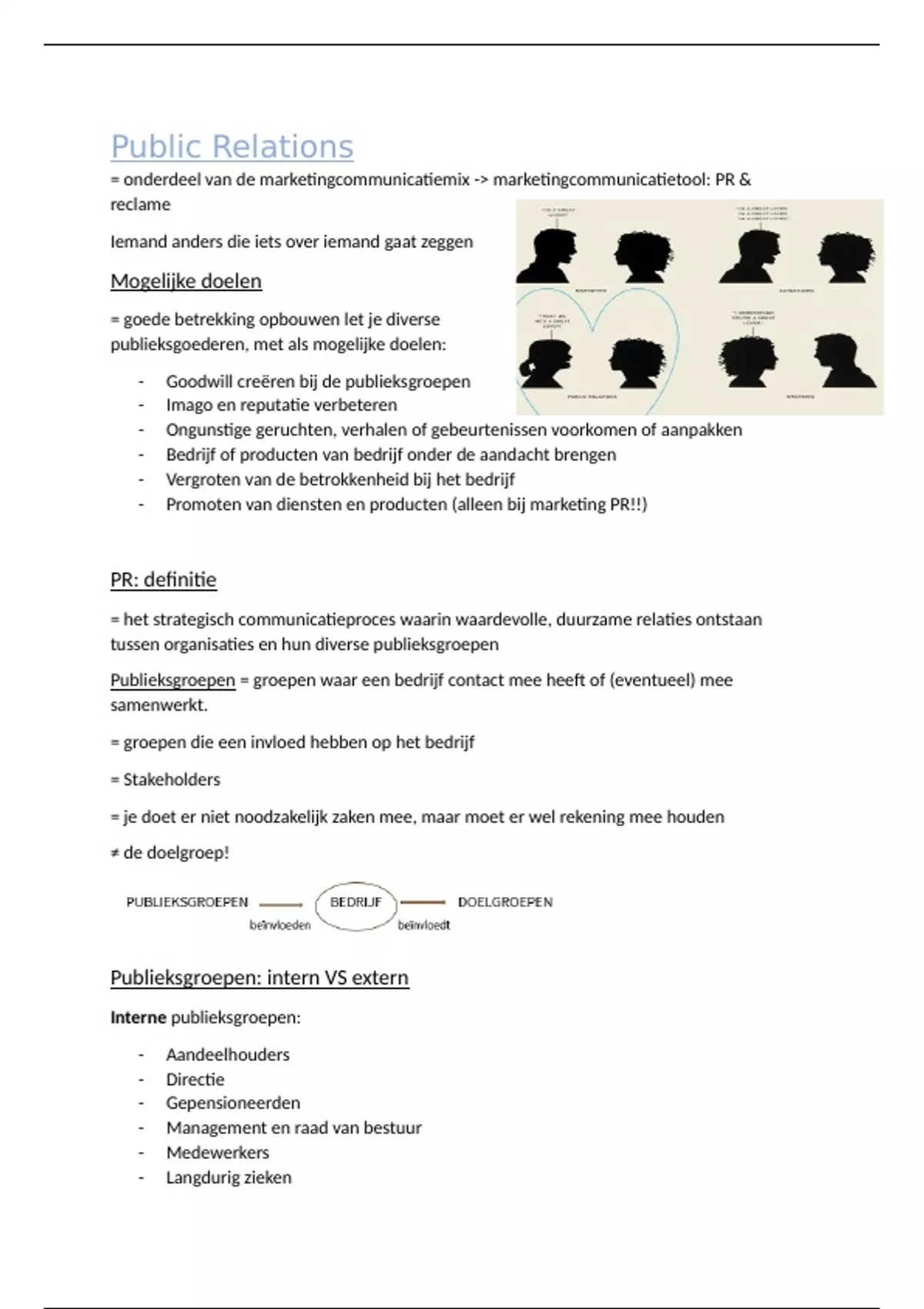 o Marketing PR: doel = relatie met (potentiële) klanten opbouwen en