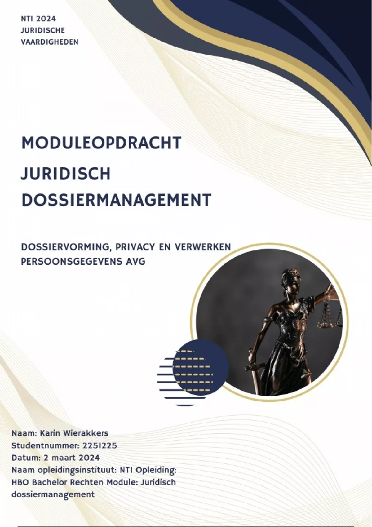van mijn opleiding is het vak Juridisch dossiermanagement. Voor dit vak heb ik een