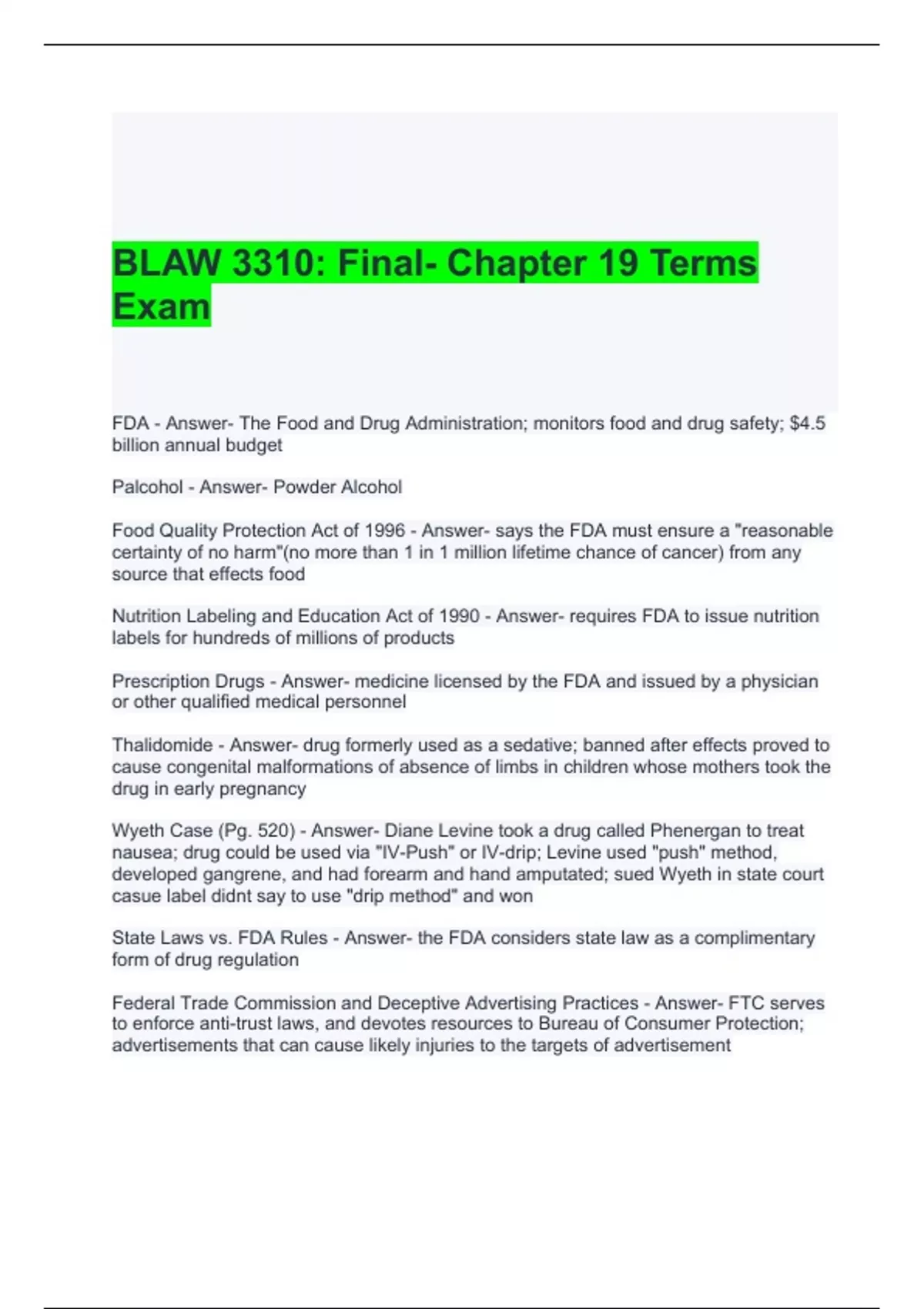BLAW 3310 Final- Chapter 19 Terms Exam with complete solutions