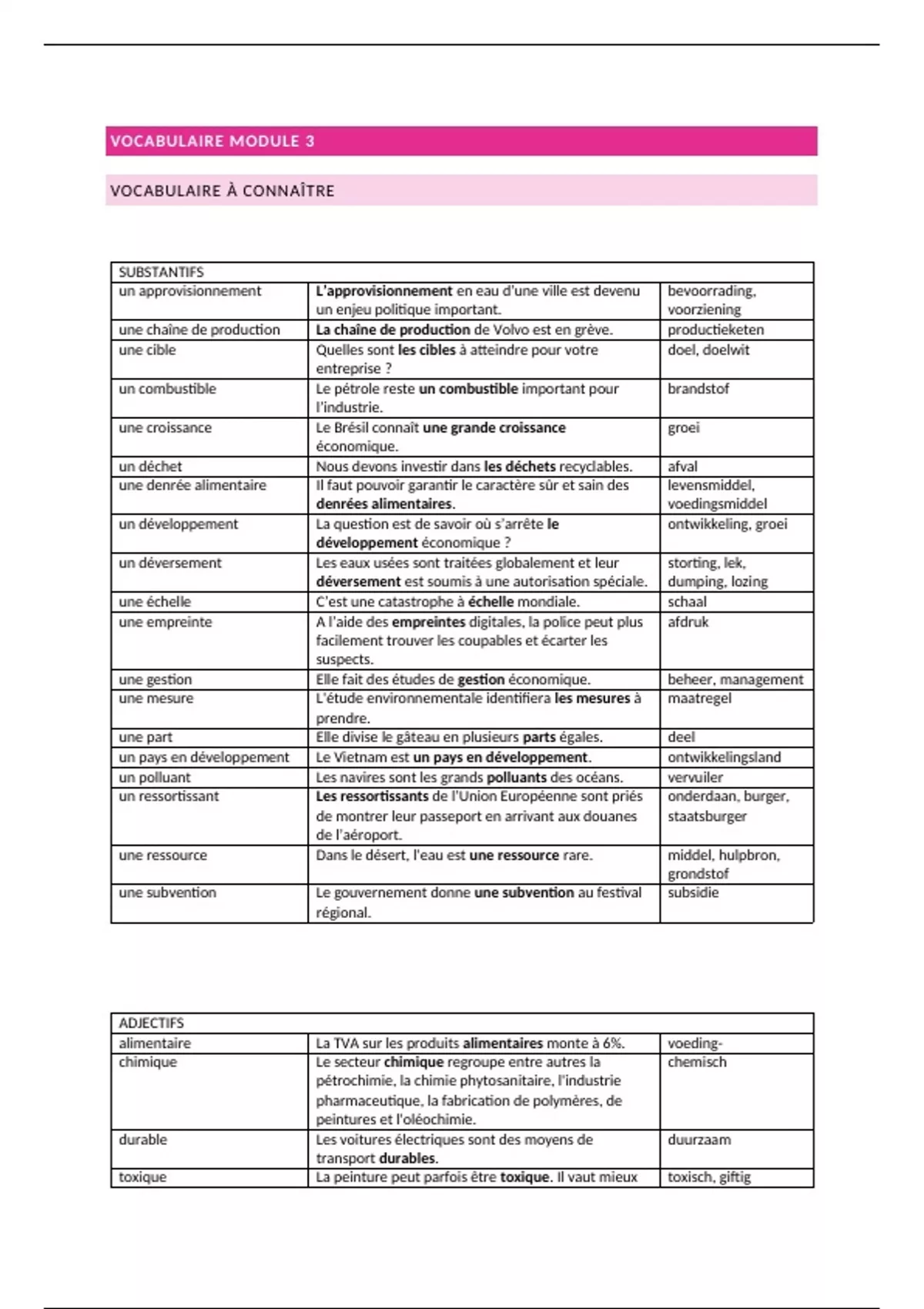 VOCABULAIRE MODULE 3