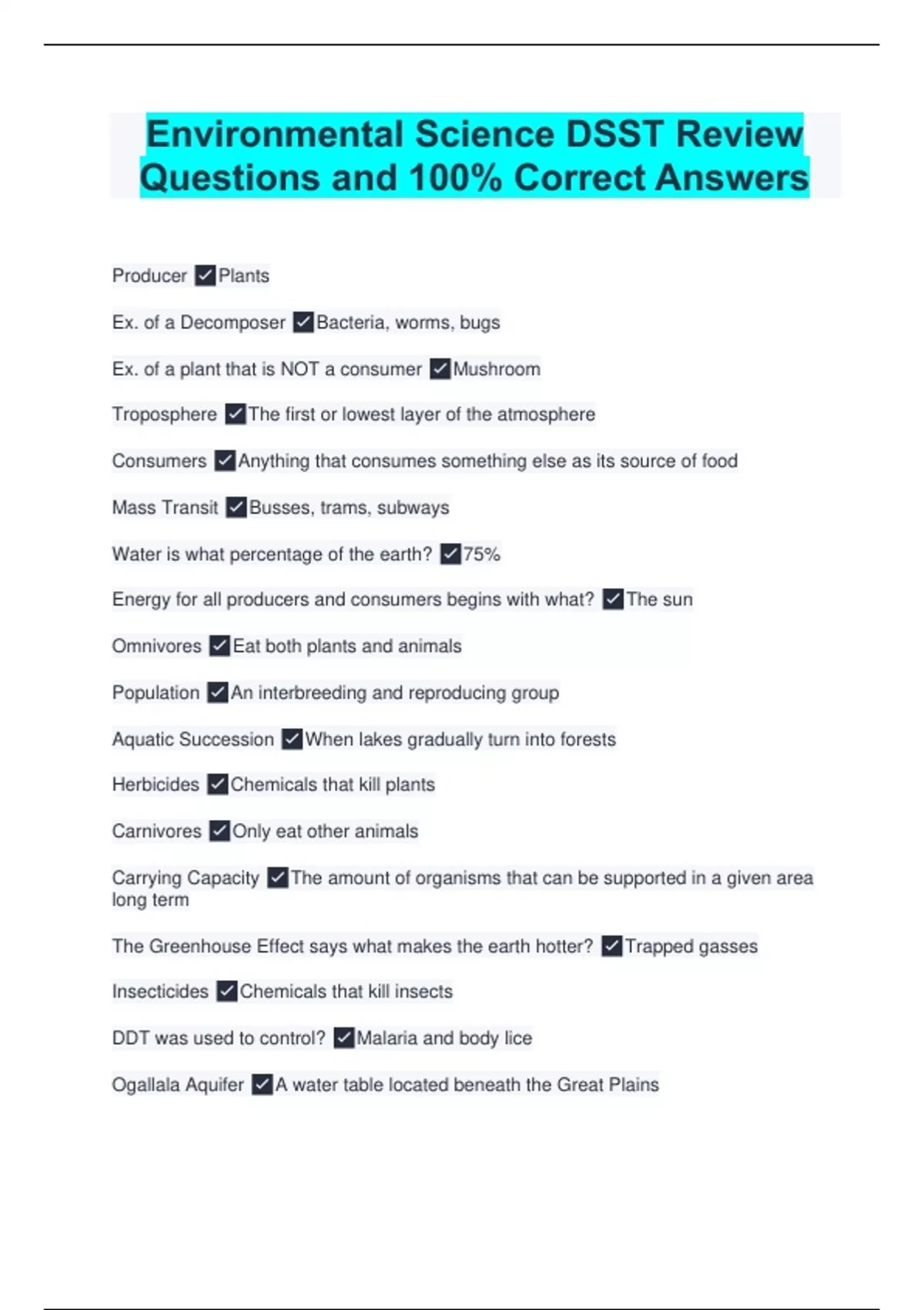 Environmental Science DSST Review Questions and 100% Correct Answers