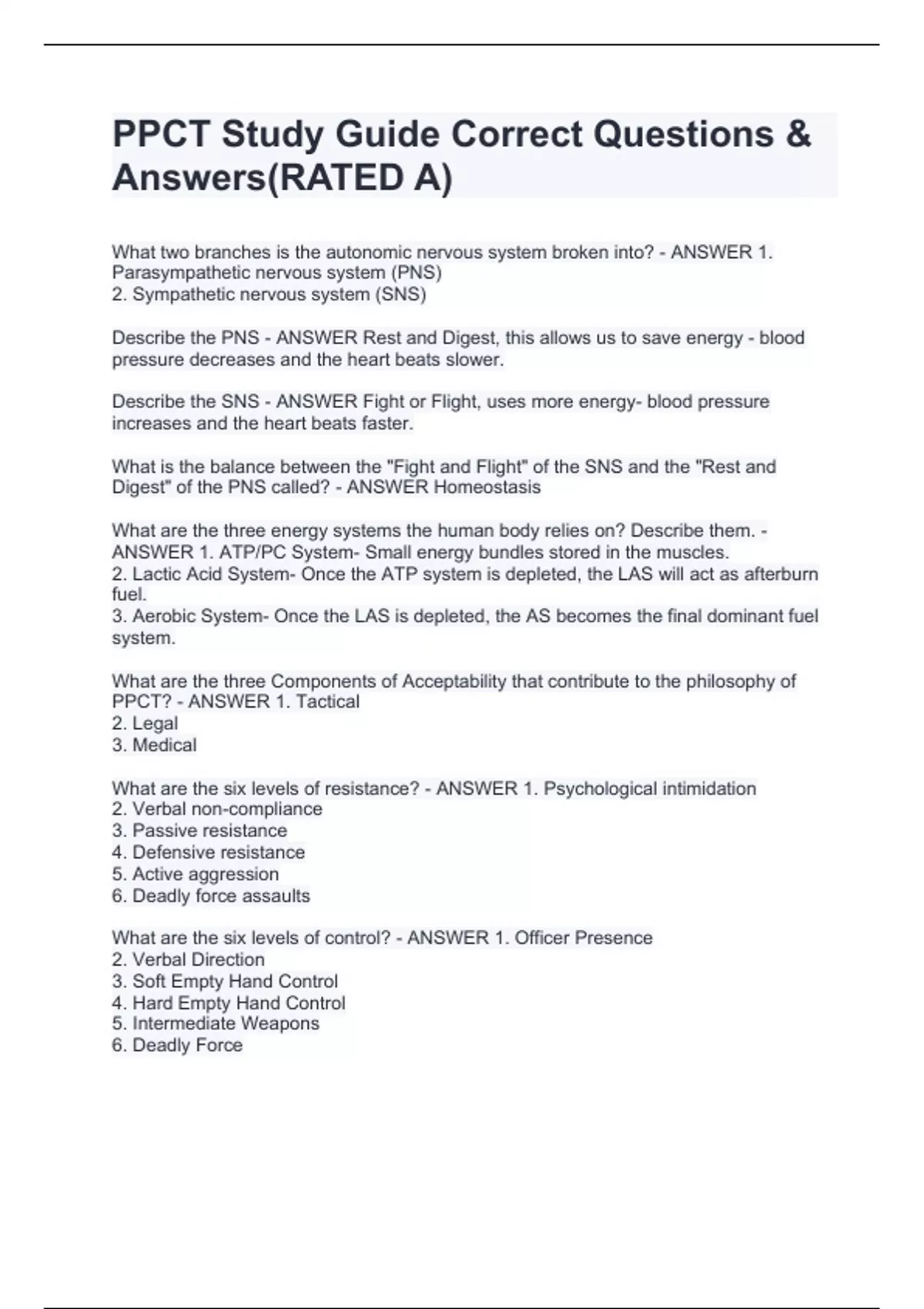 PPCT Study Guide Correct Questions & Answers(RATED A)