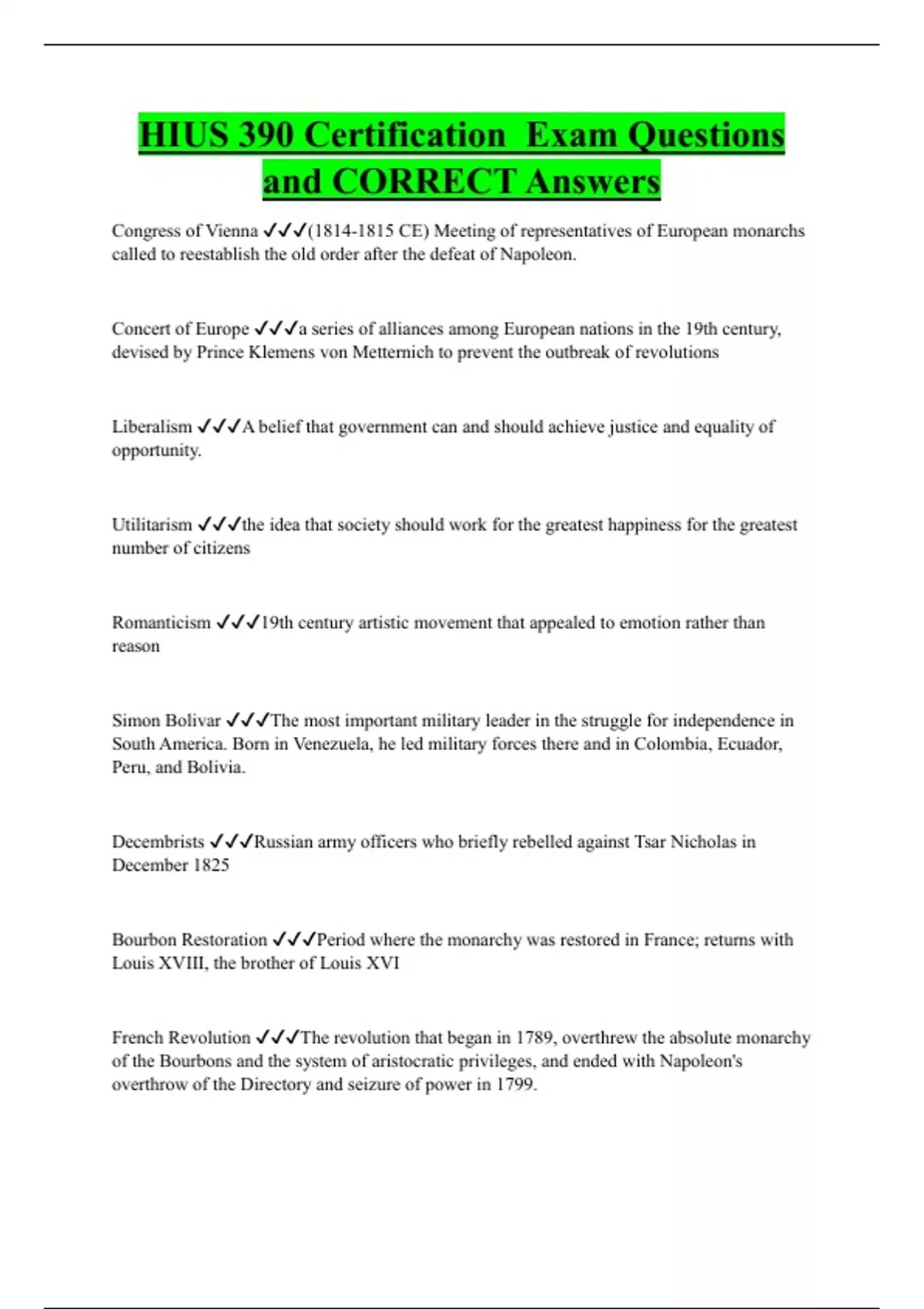 HIUS 390 Certification Exam Questions and CORRECT Answers