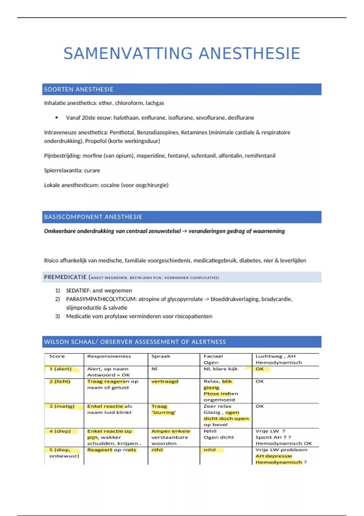 amnesie/analgesie: begin tot optreden bewustzijnsverlies