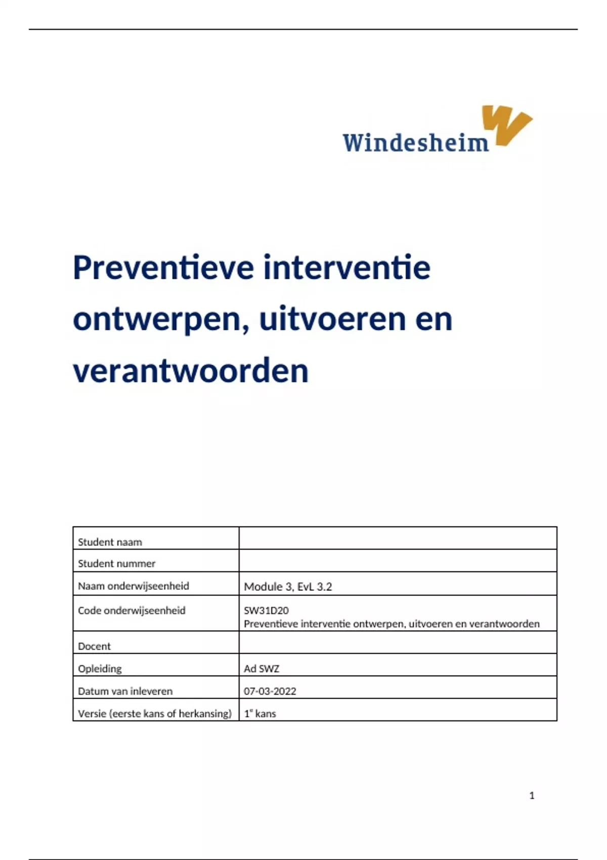 Preventieve interventie ontwerpen, uitvoeren en verantwoorden