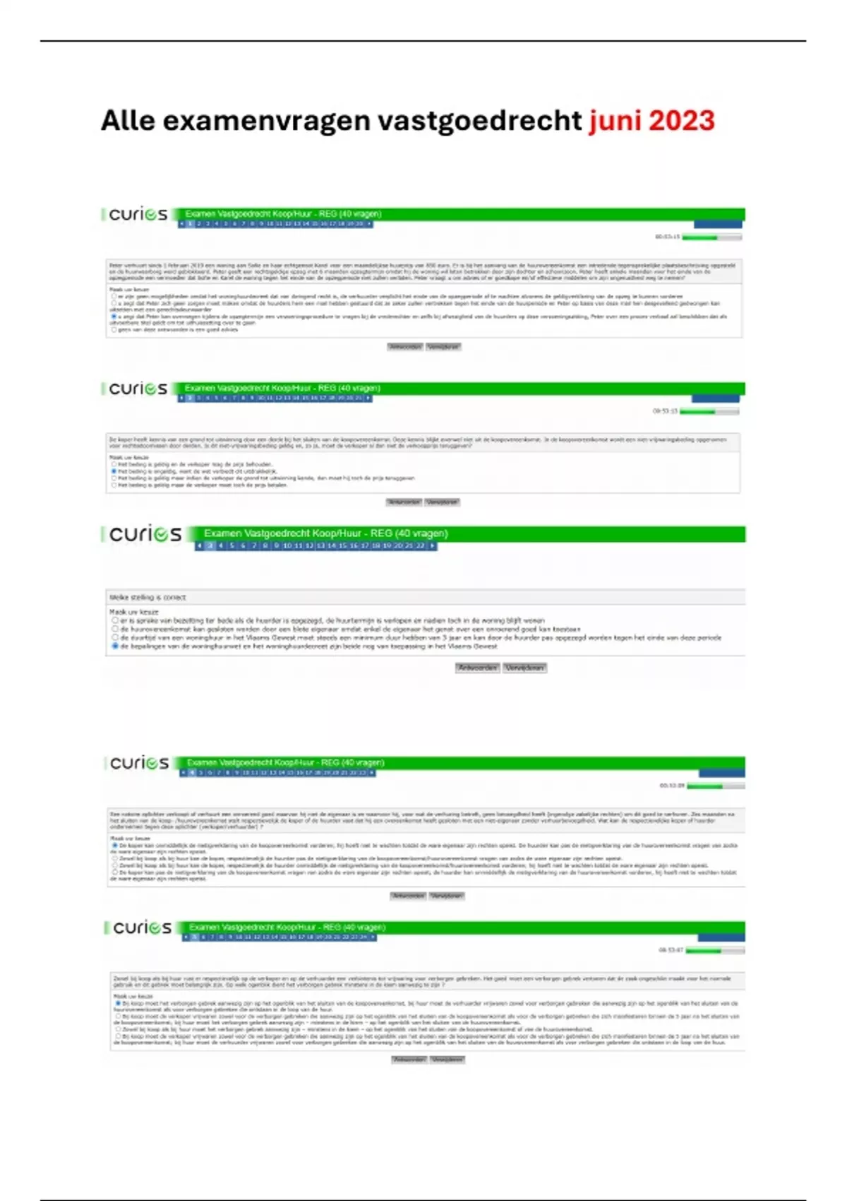 Alle examenvragen vastgoedrecht juni 2023 en 2022 40 vragen uit 2023 en 40 vragen uit 2022 Sommige vragen waren hetzelfde, sommige anders Dus 80 vragen in totaal