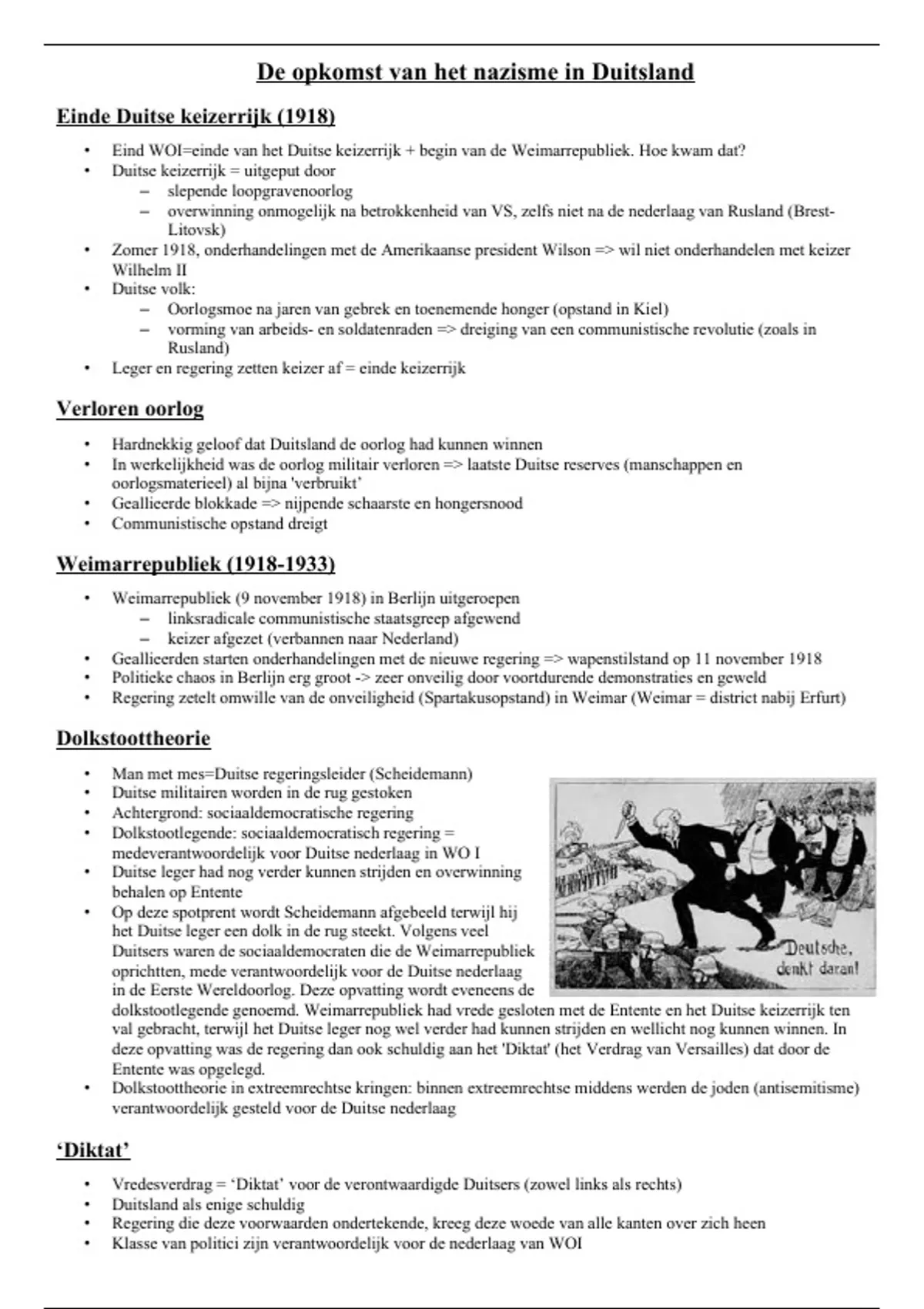 • Vredesverdrag = ‘Diktat’ voor de verontwaardigde Duitsers (zowel links als rechts)