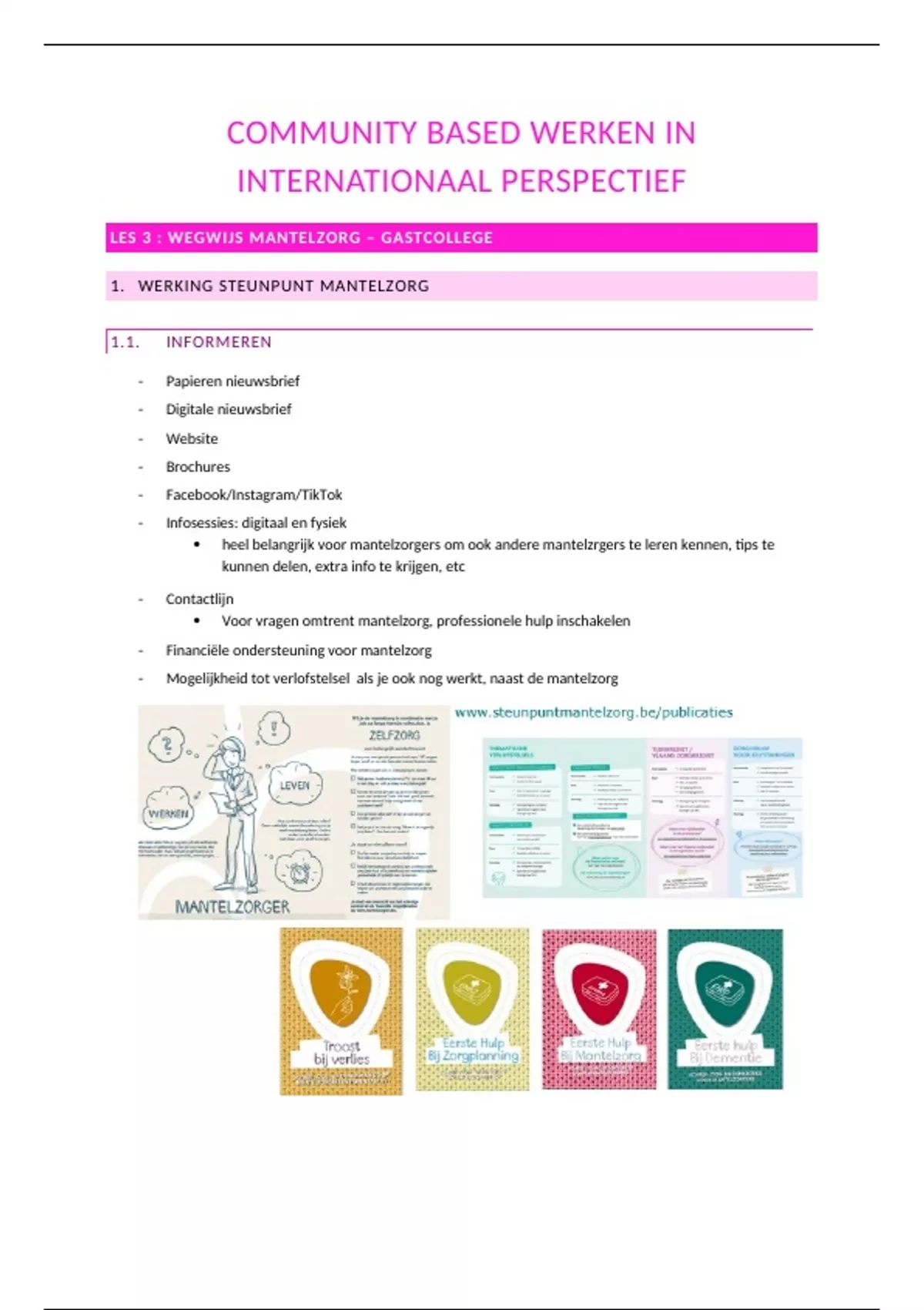 Samenvatting LES 3 : WEGWIJS MANTELZORG – GASTCOLLEGE