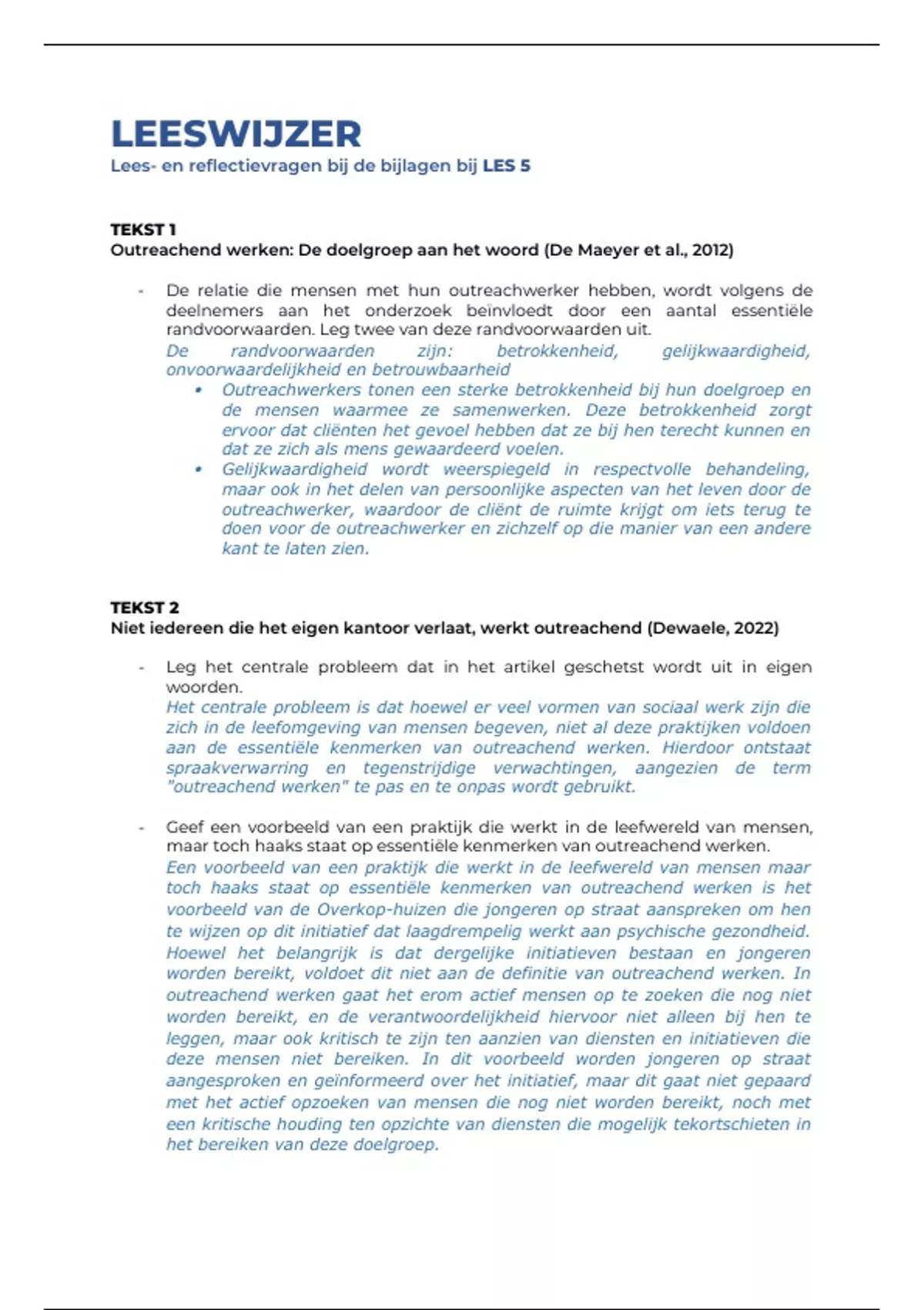 Lees- en reflectievragen bij de bijlagen bij LES 5