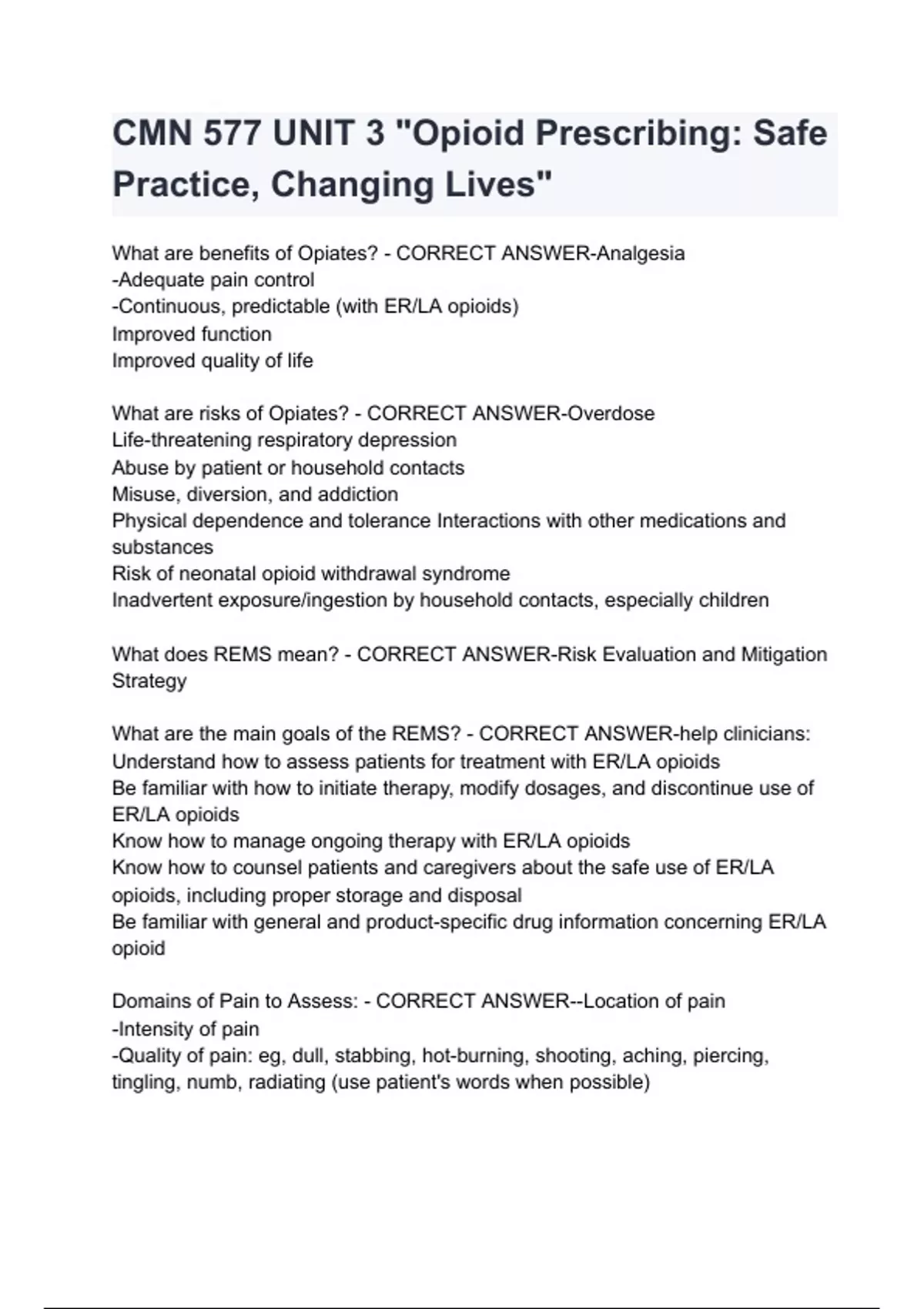 CMN 577 UNIT 3 _Opioid Prescribing_ Safe Practice, Changing Lives_.