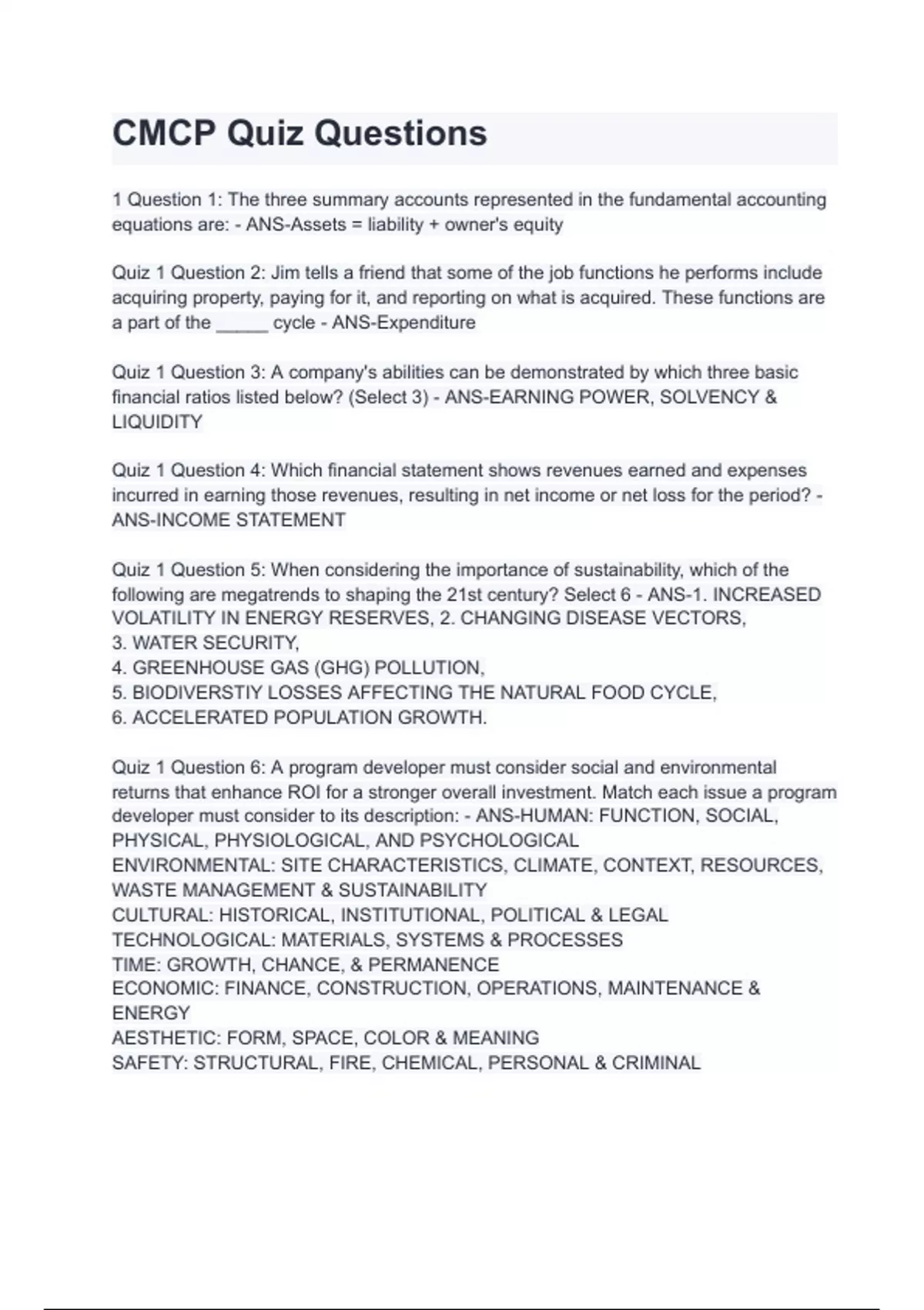 CMCP Quiz Questions