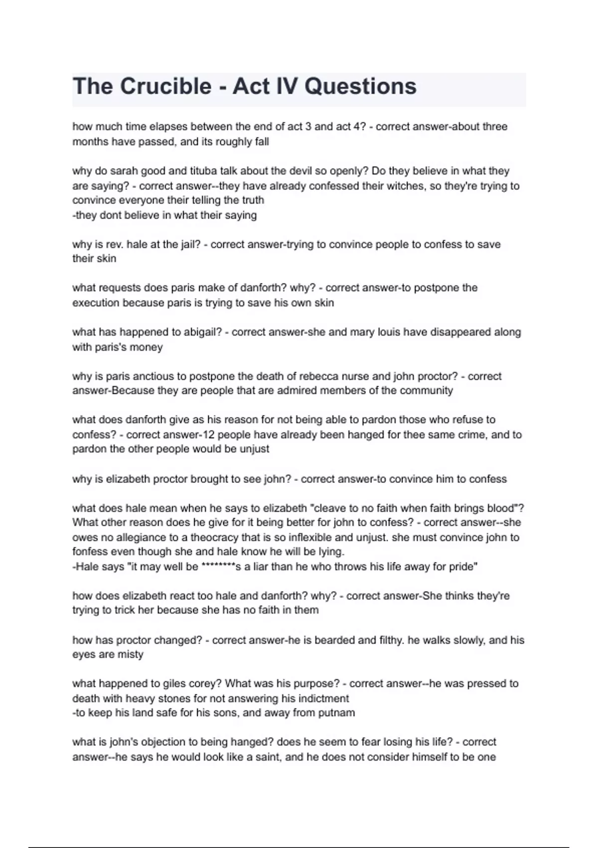 The Crucible - Act IV Questions