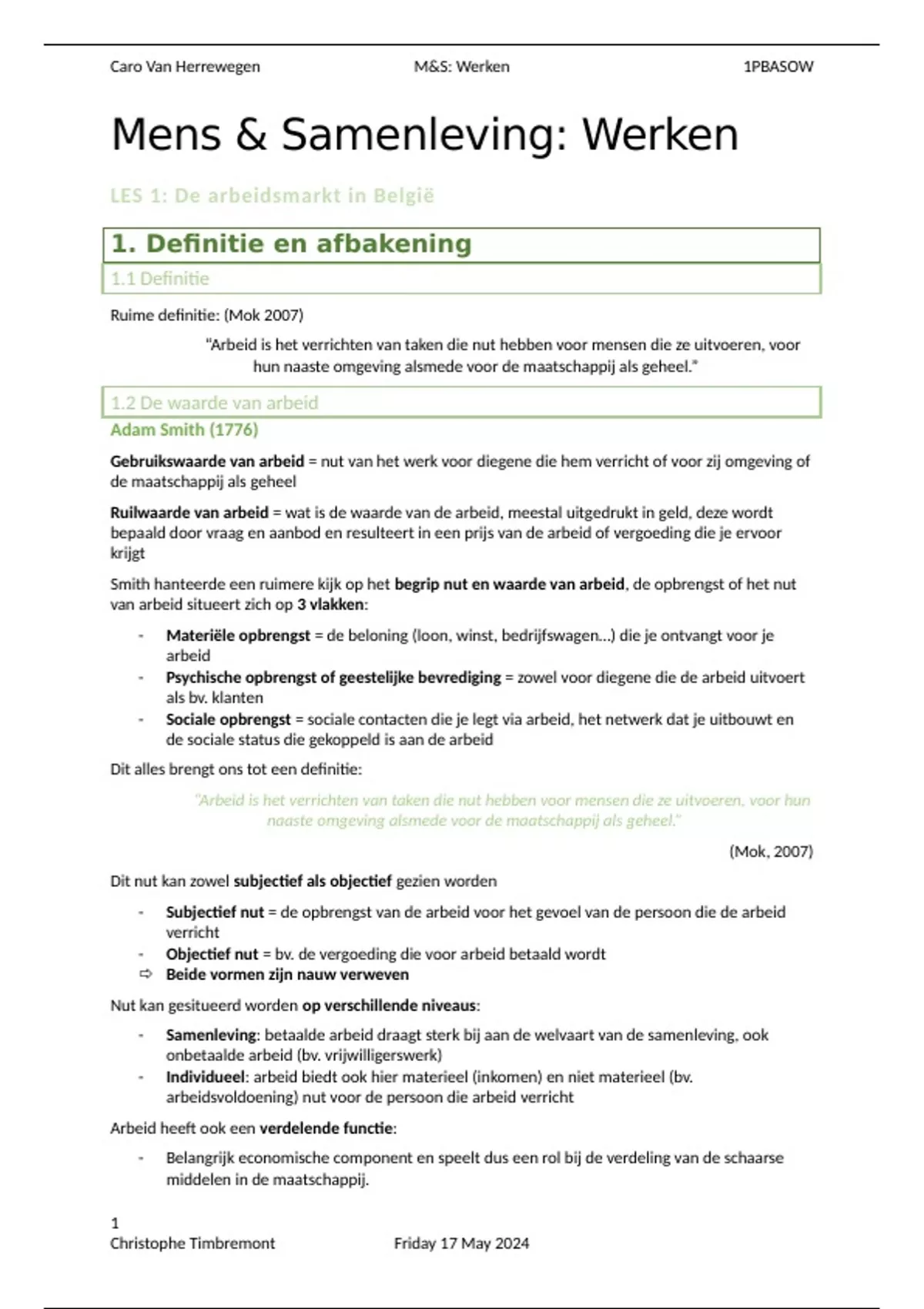 , Caro Van Herrewegen M&S: Werken 1PBASOW