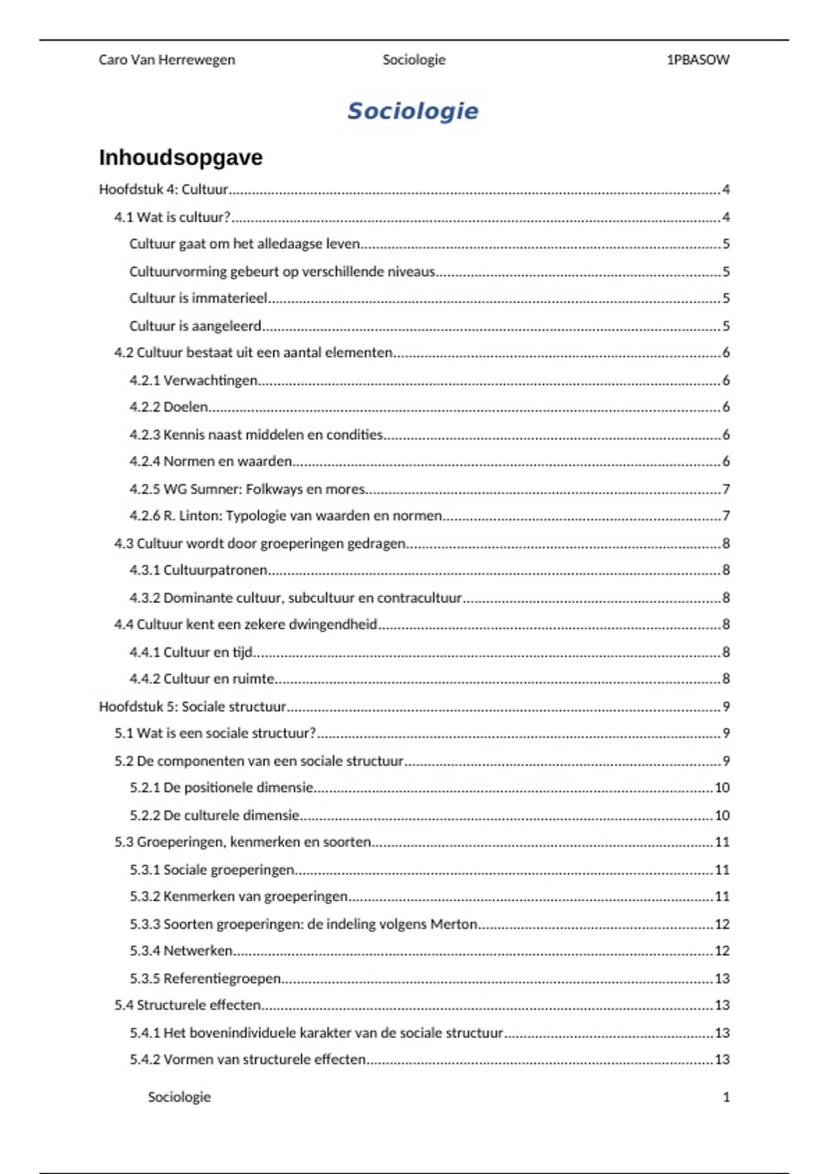 ,Caro Van Herrewegen Sociologie 1PBASOW