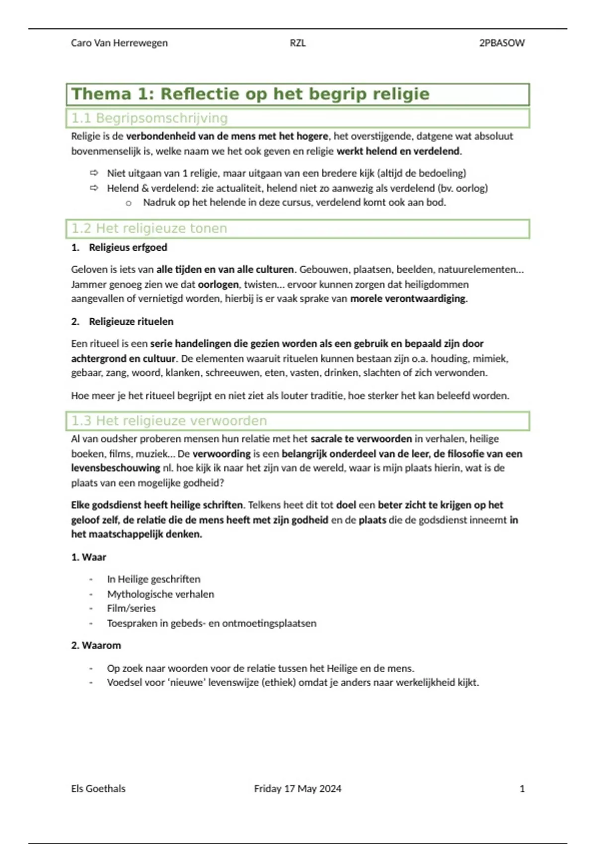 Thema 1: Reflectie op het begrip religie