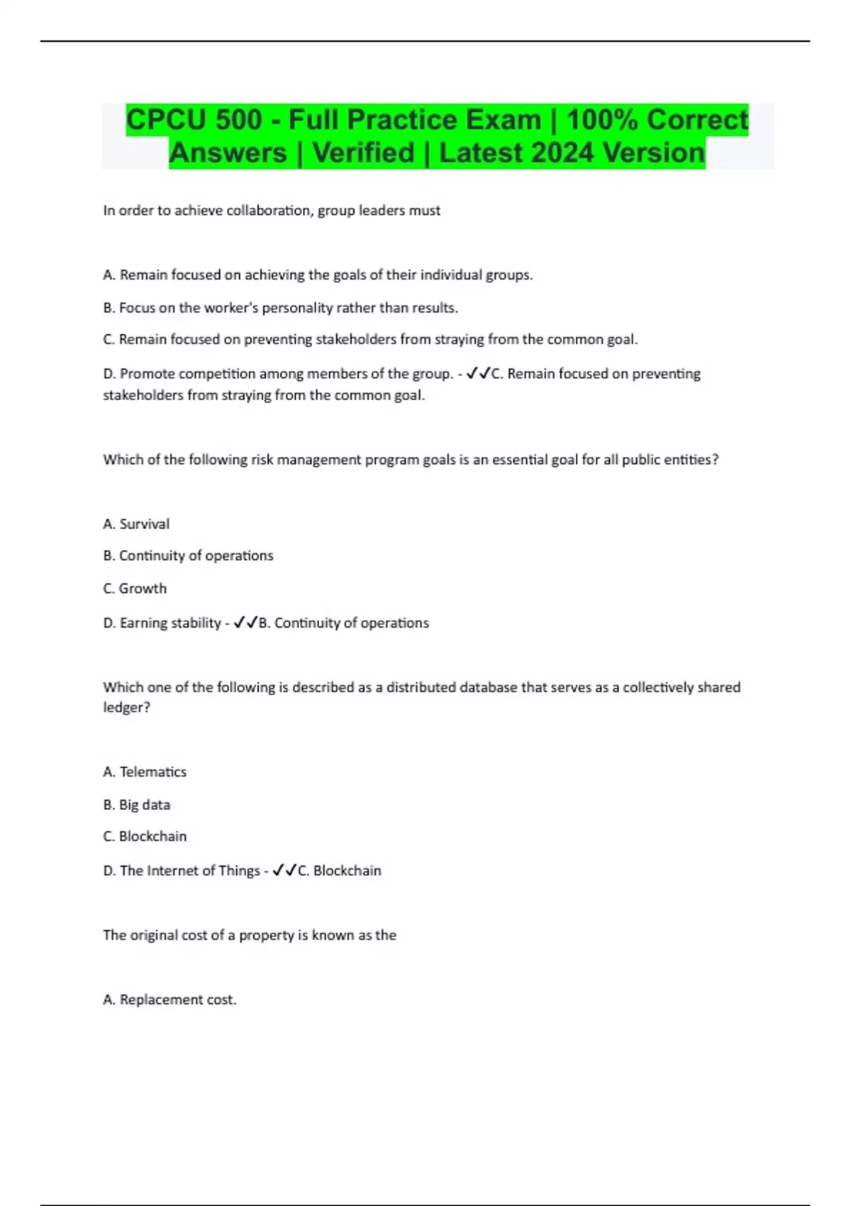 cpcu 500 full practice exam 100 correct answe