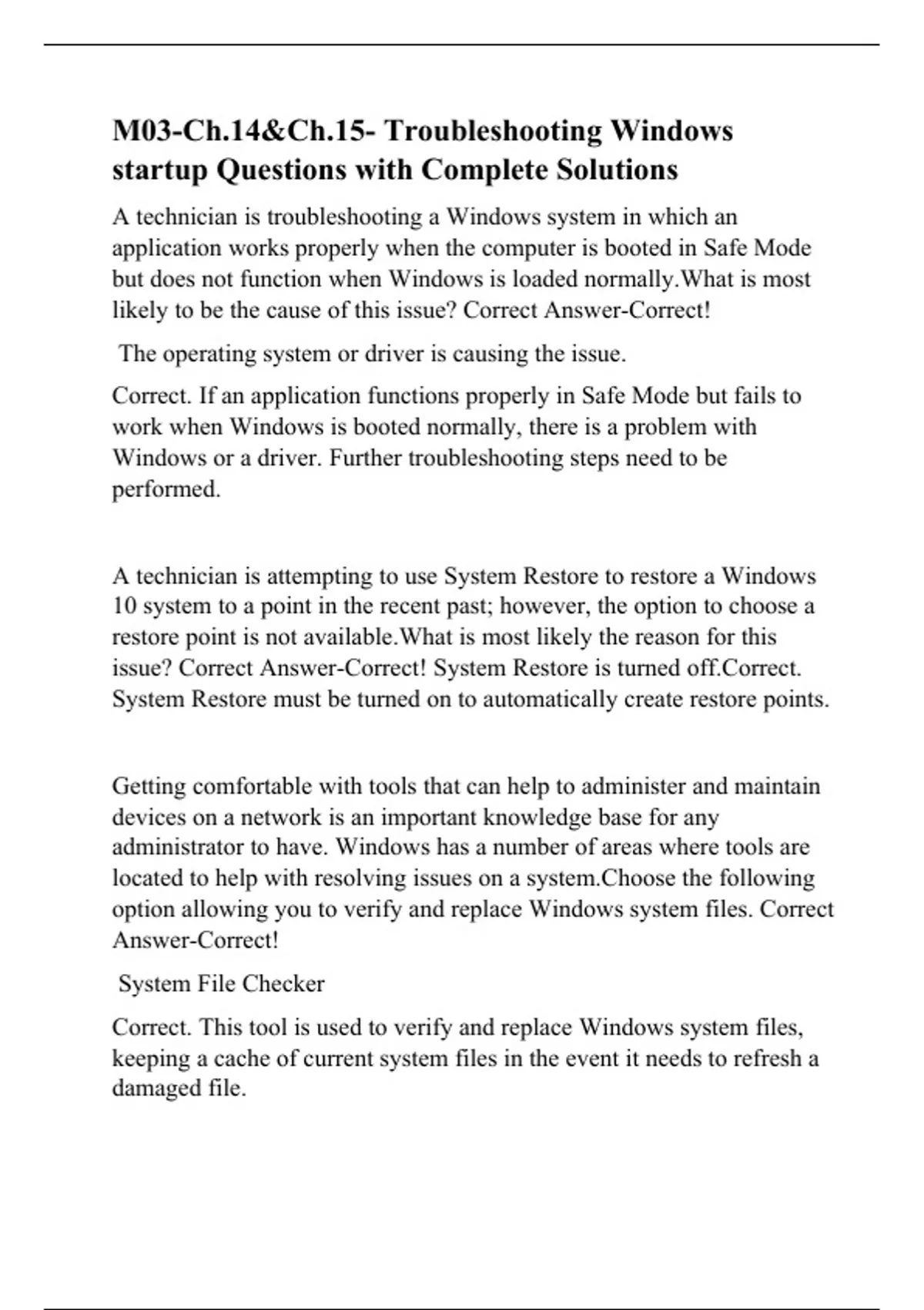 M03-Ch.14&Ch.15- Troubleshooting Windows startup Questions with Complete Solutions