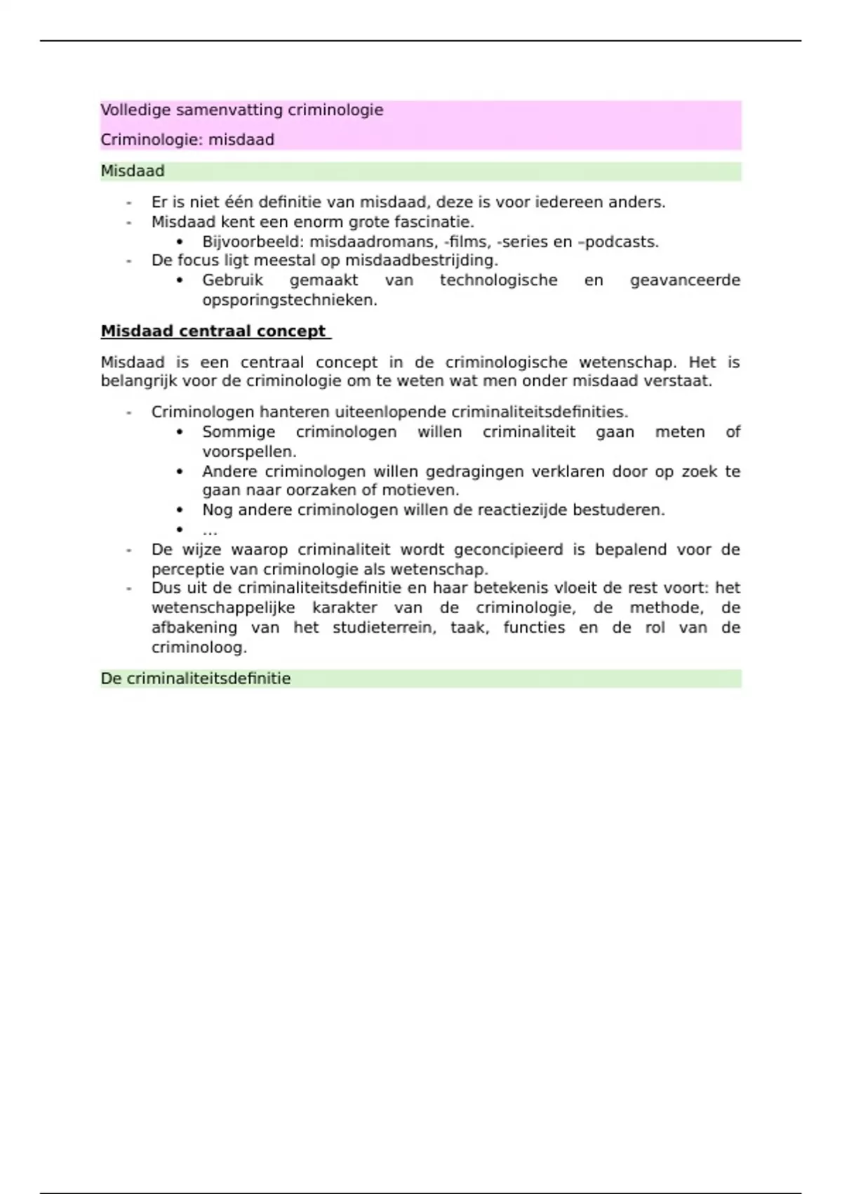 Dit is een samenvatting op basis van de PowerPoints, mijn notities en haar extra notities. Aan het eind van elke hoofdstuk staan de voorbeeldvragen ingevuld. Ik ben op basis van het studeren van mijn samenvatting al elke keer geslaagd geweest, in eerste zit, voor al mijn examens.