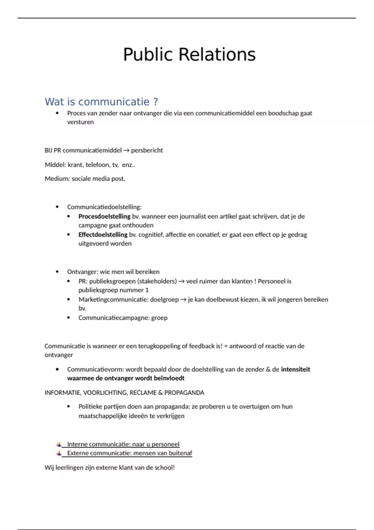 PR: publieksgroepen (stakeholders) → veel ruimer dan klanten ! Personeel is