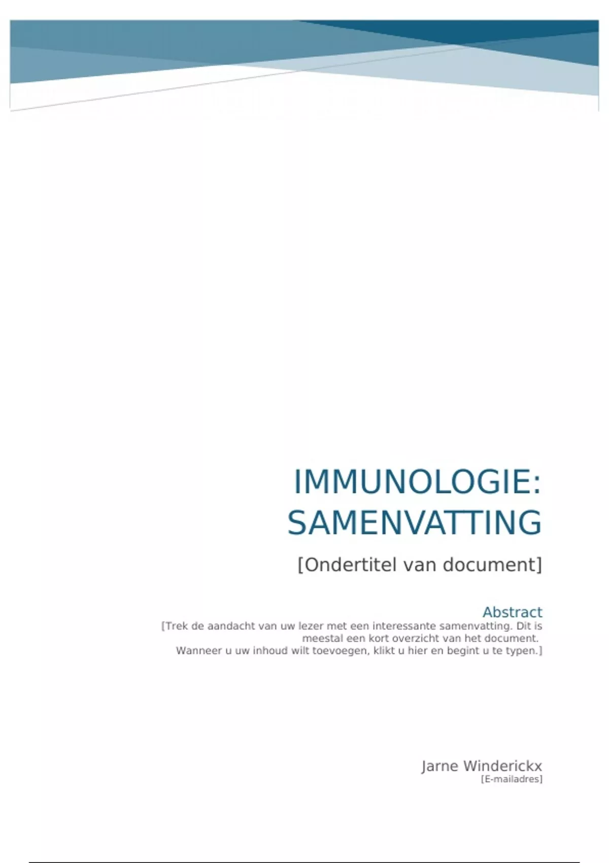 samenvatting immunologie (voor goedkopere prijs stuur via messenger naar Jarne Winderickx)