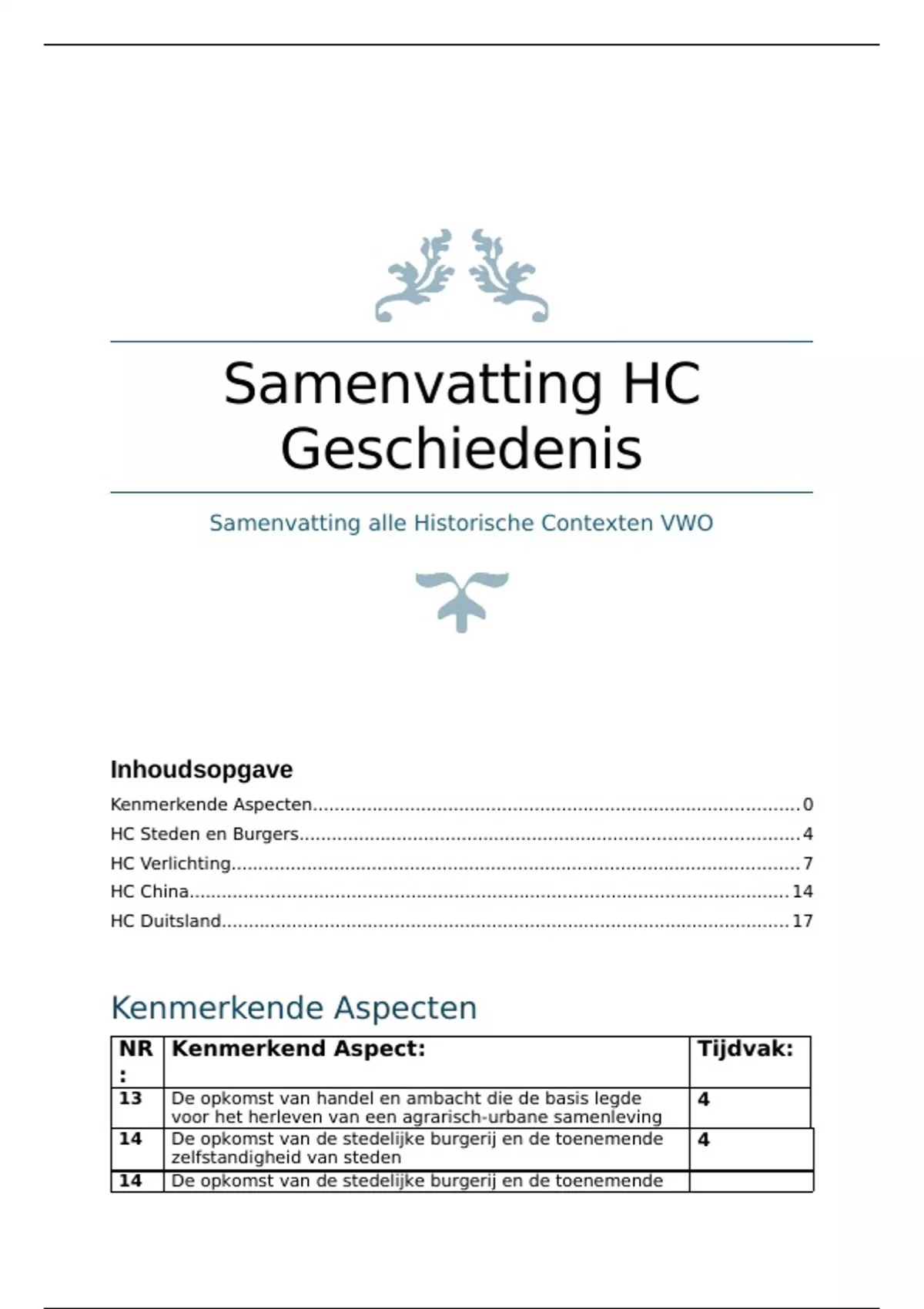 Samenvatting alle Historische Contexten VWO