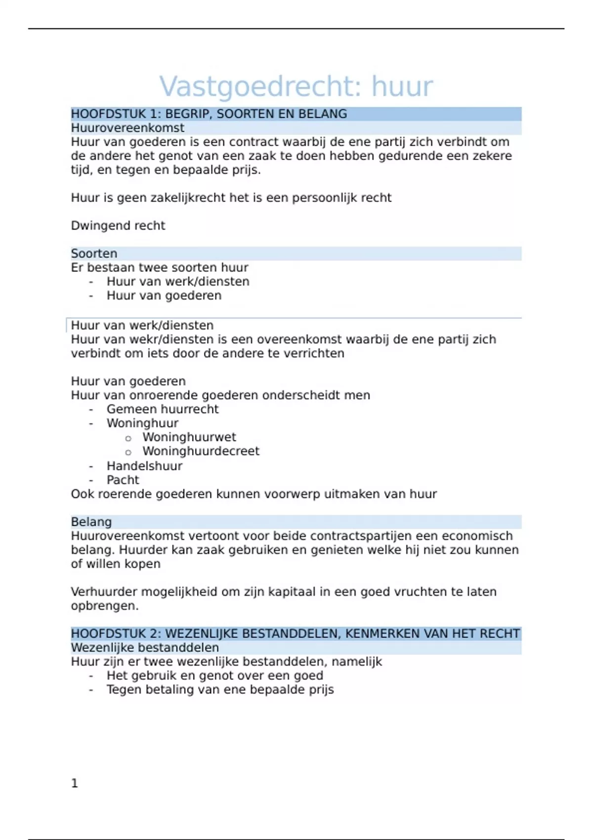 Een huurovereenkomst heeft de kenmerken die hierna worden besproken.
