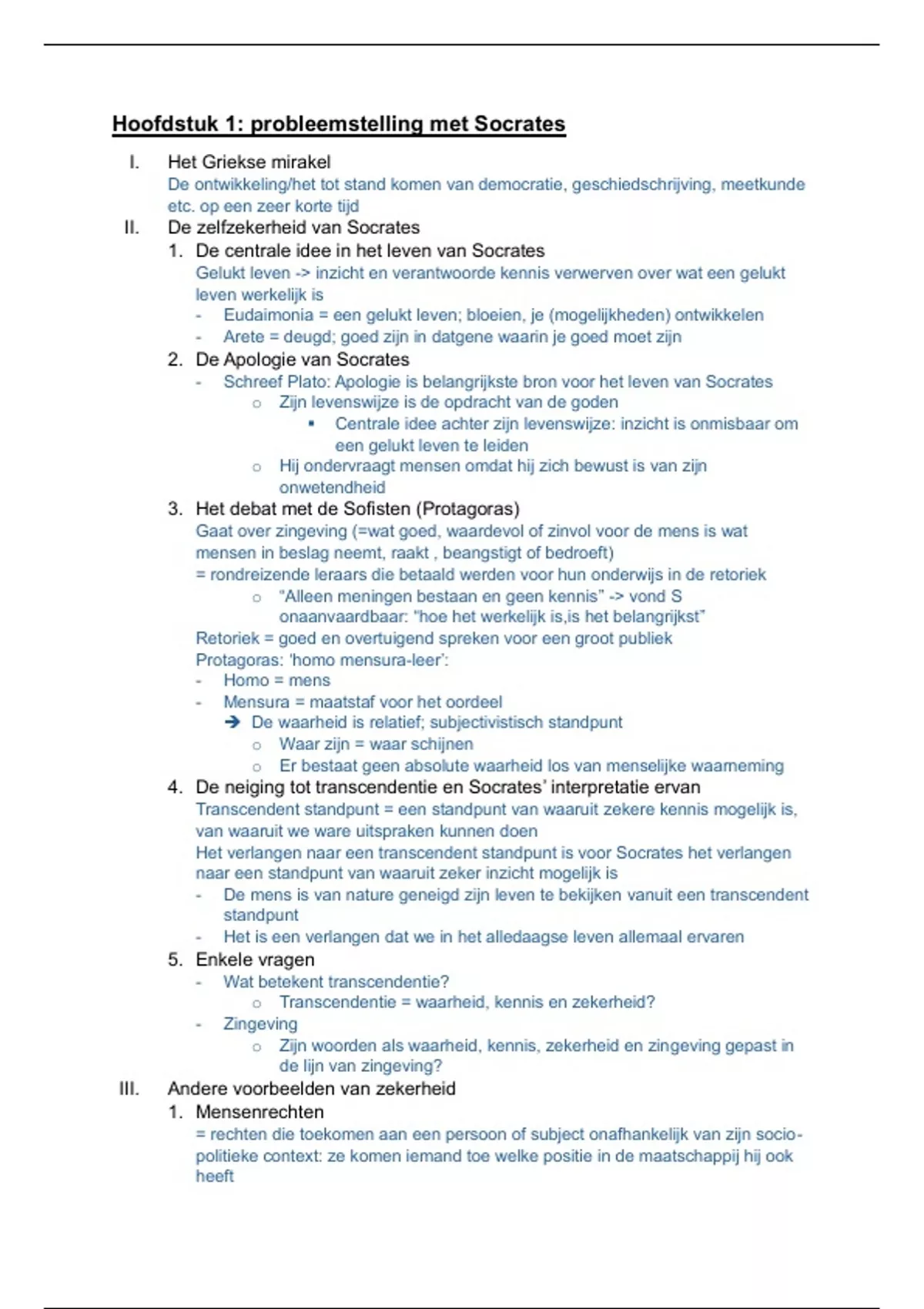 o Transcendentie = waarheid, kennis en zekerheid?