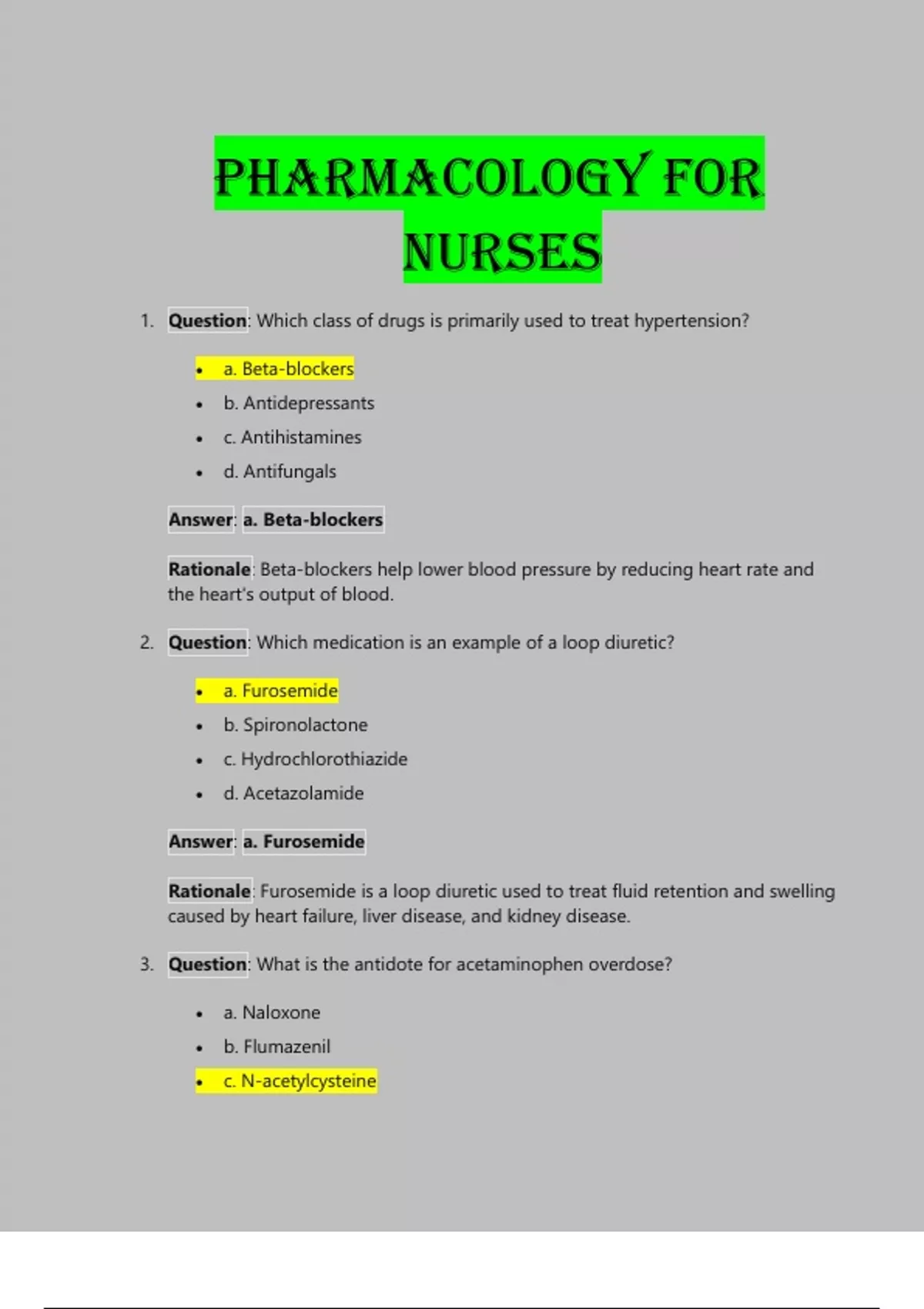 1. Question: Which class of drugs is primarily used to treat hypertension?