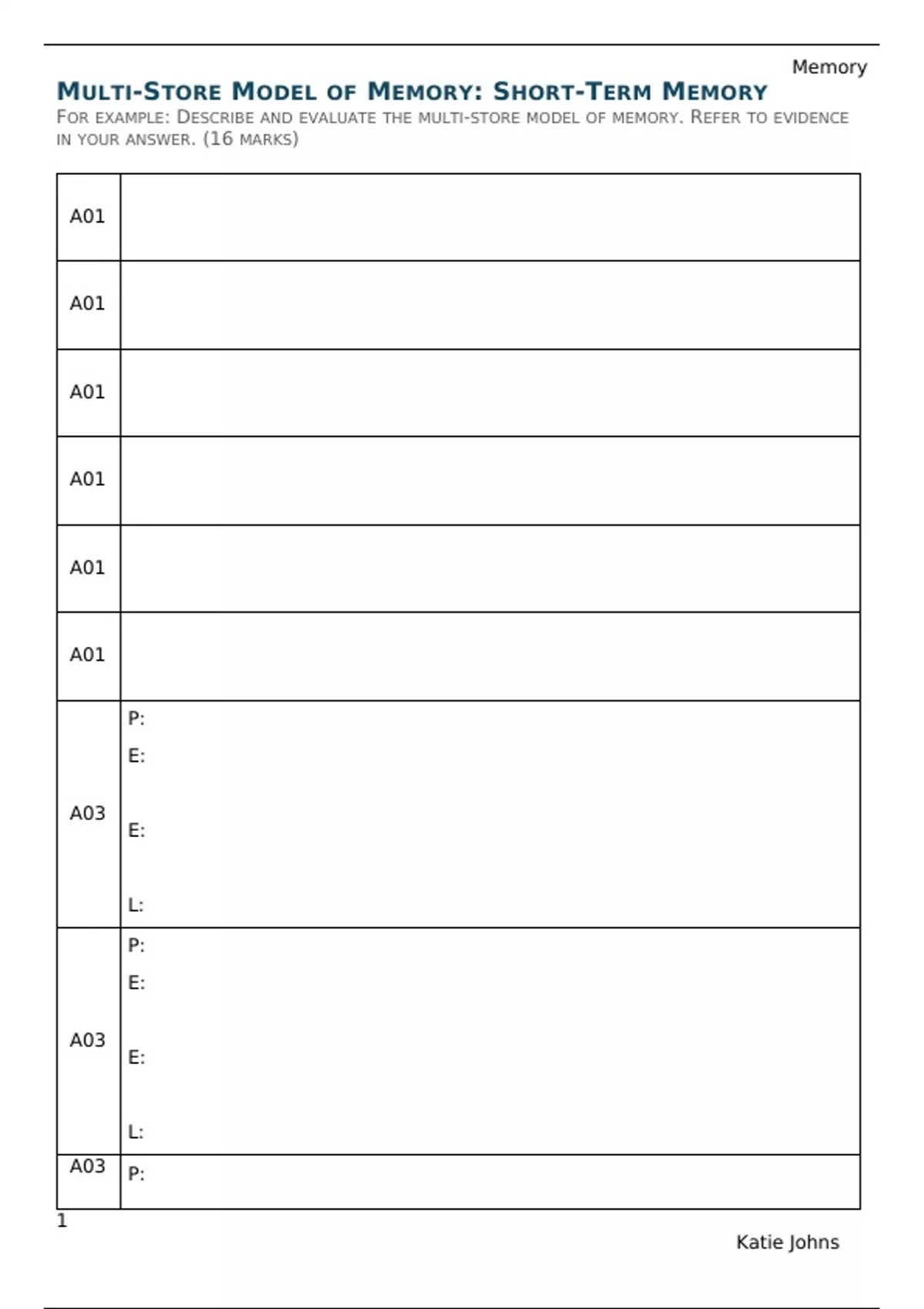 MULTI-STORE MODEL OF MEMORY: SHORT-TERM MEMORY