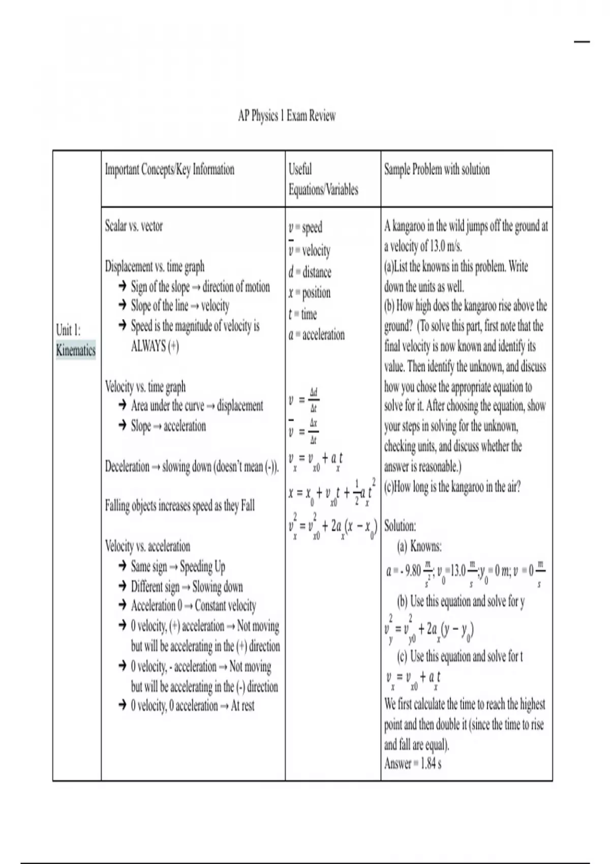AP Physics 1 Exam review - Units 1-7