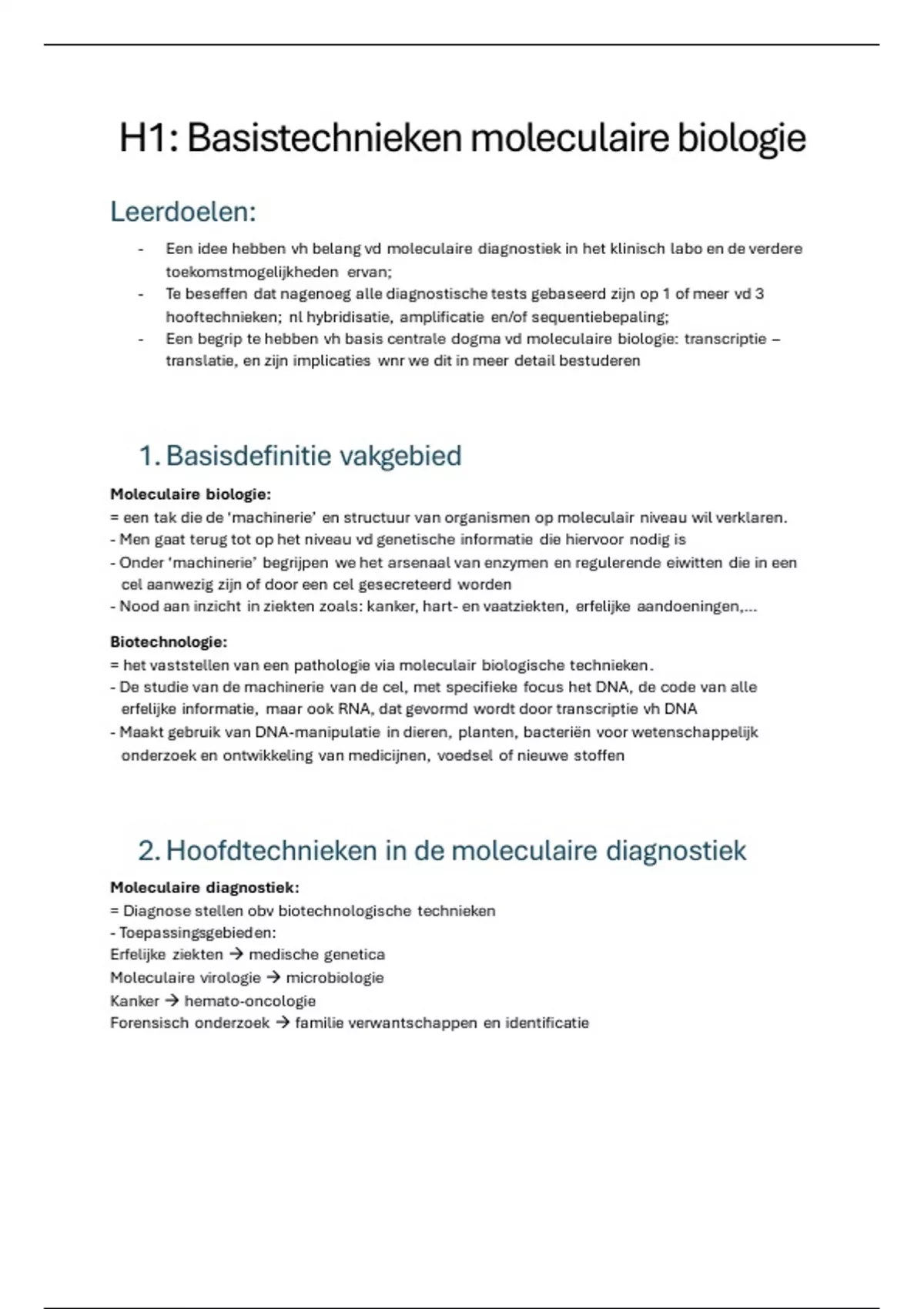 Samenvatting moleculaire diagnostiek
